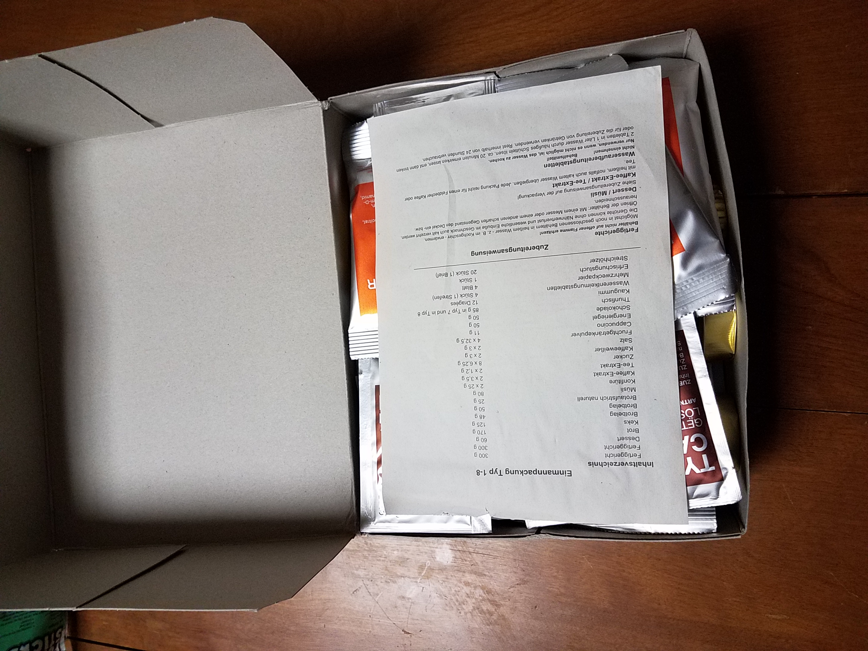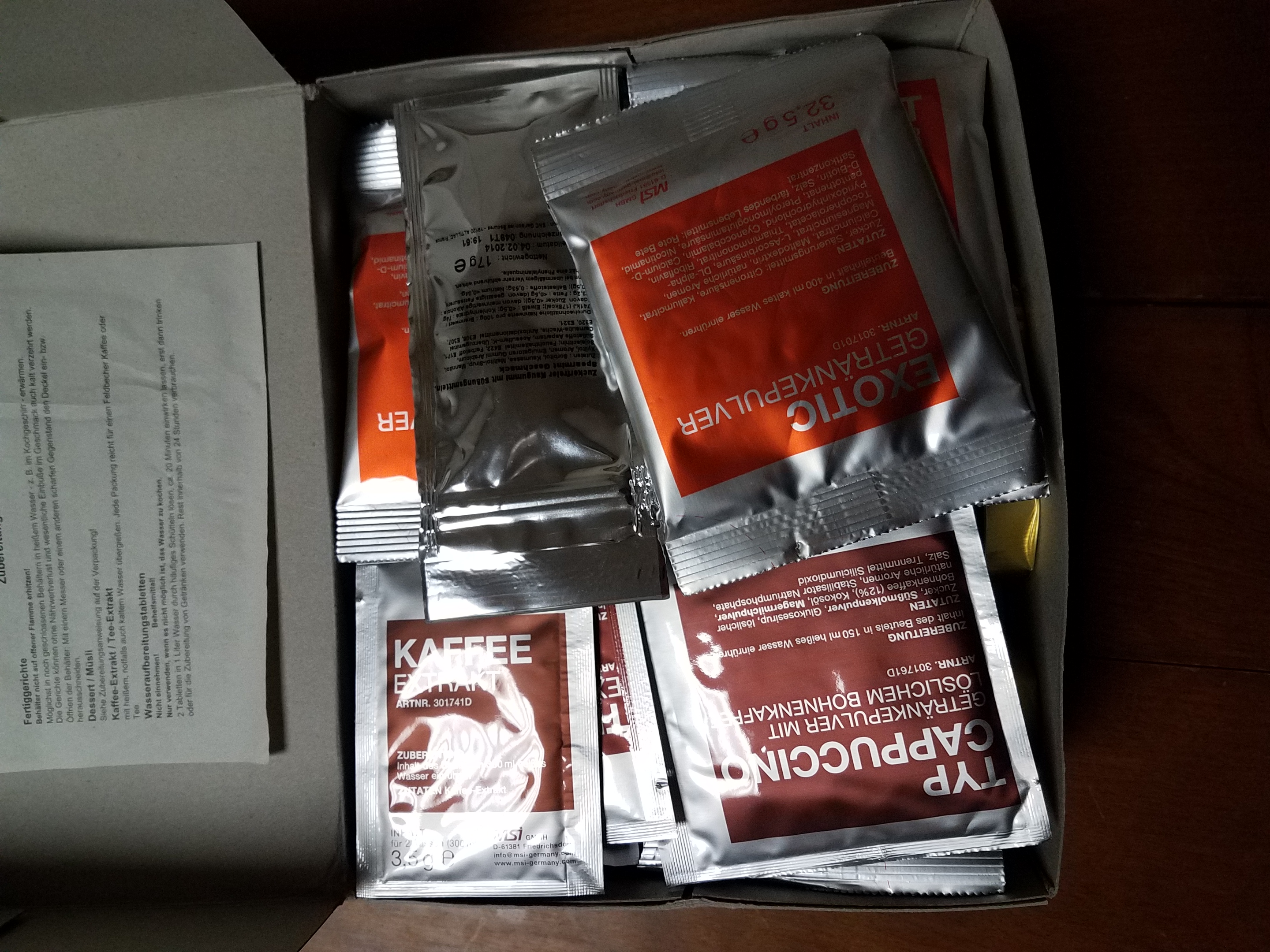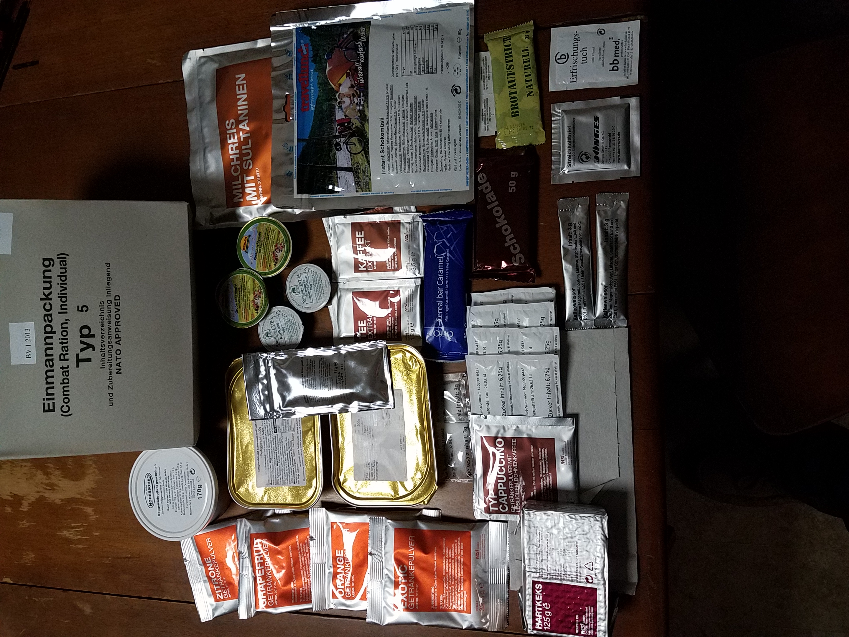 I bought a Typ 5 EPA Blackdogbob a few weeks ago, and I jumped right in the day after I ate the French RCIR. The contents are similar in vastness to the RCIR and this one also happened to be a similar meal too. The EPA was packed as follows:
