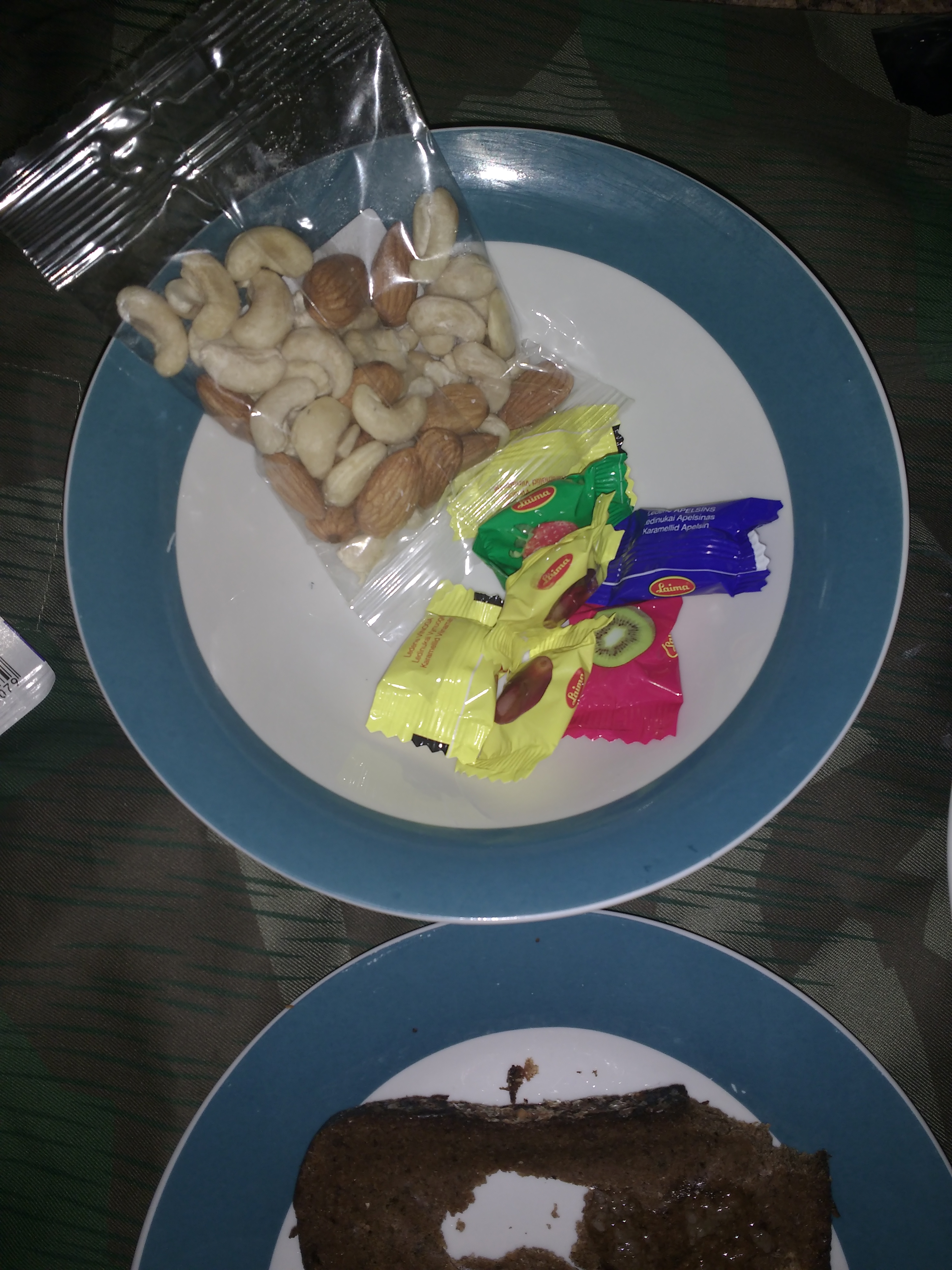 Snacks were plain and simple, a packet of hazelnuts and cashews and a few fruit sweet, the sweets were strawberry, kiwi and I think plum flavour, nothing amazing but a nice addition to the pack.