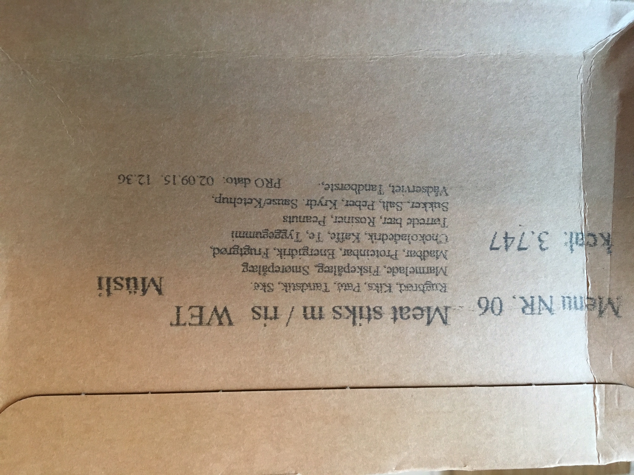 The boxe are a little brused, this is because the only way to get Danish MRE are from a soldier who has had it given in the field :)