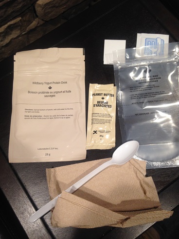 The coffee was great - the best instant coffee I've had to date. Strong, but not too bitter, and smooth. The protein drink was also very good - great berry aroma, nice and thick, a mild berry flavor. It was a bit chalky, but no more so than other protein drinks I've had, ration or non-ration versions.