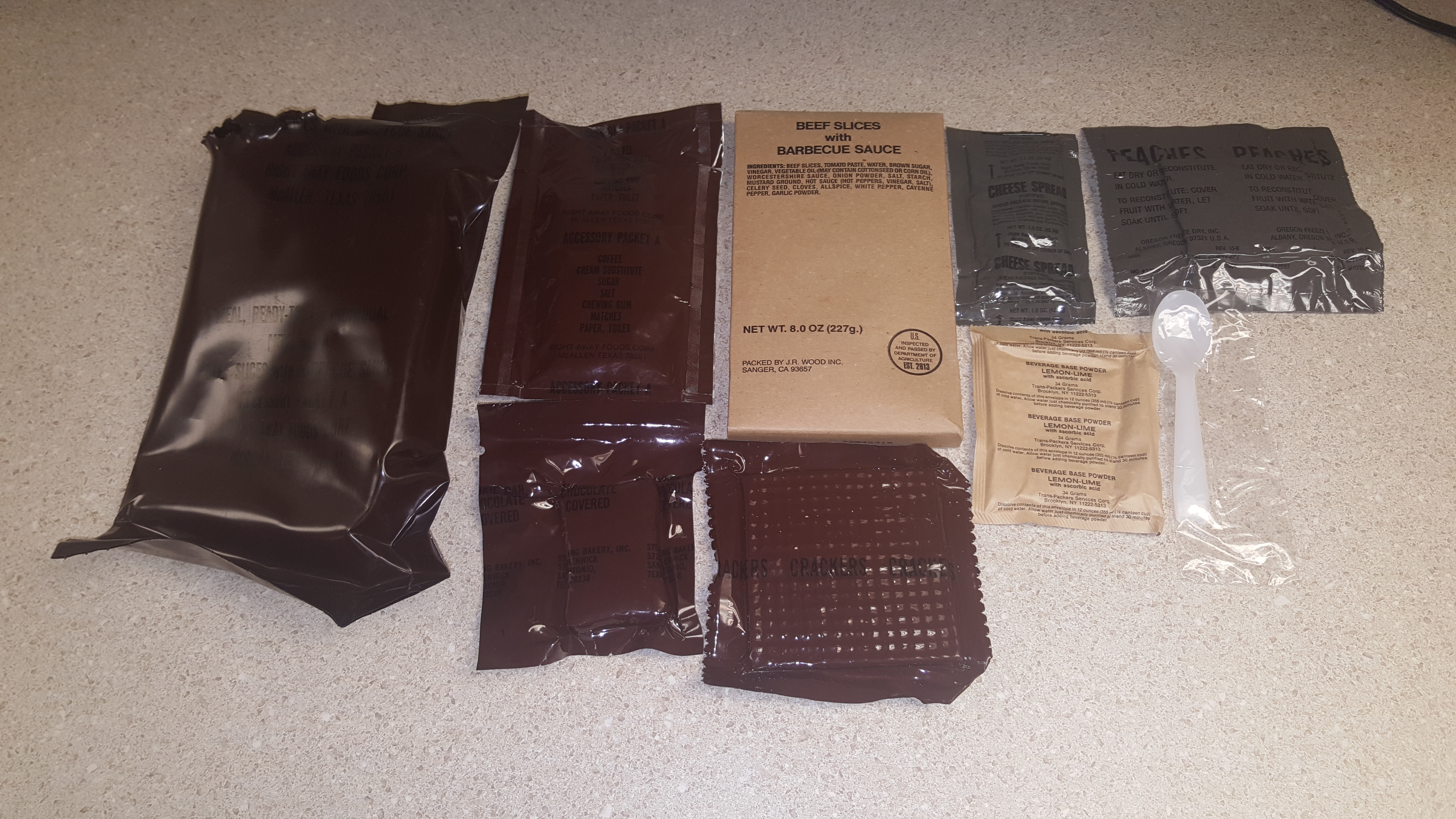 The MRE prior to opening: Opened with everything laid out: Contents: