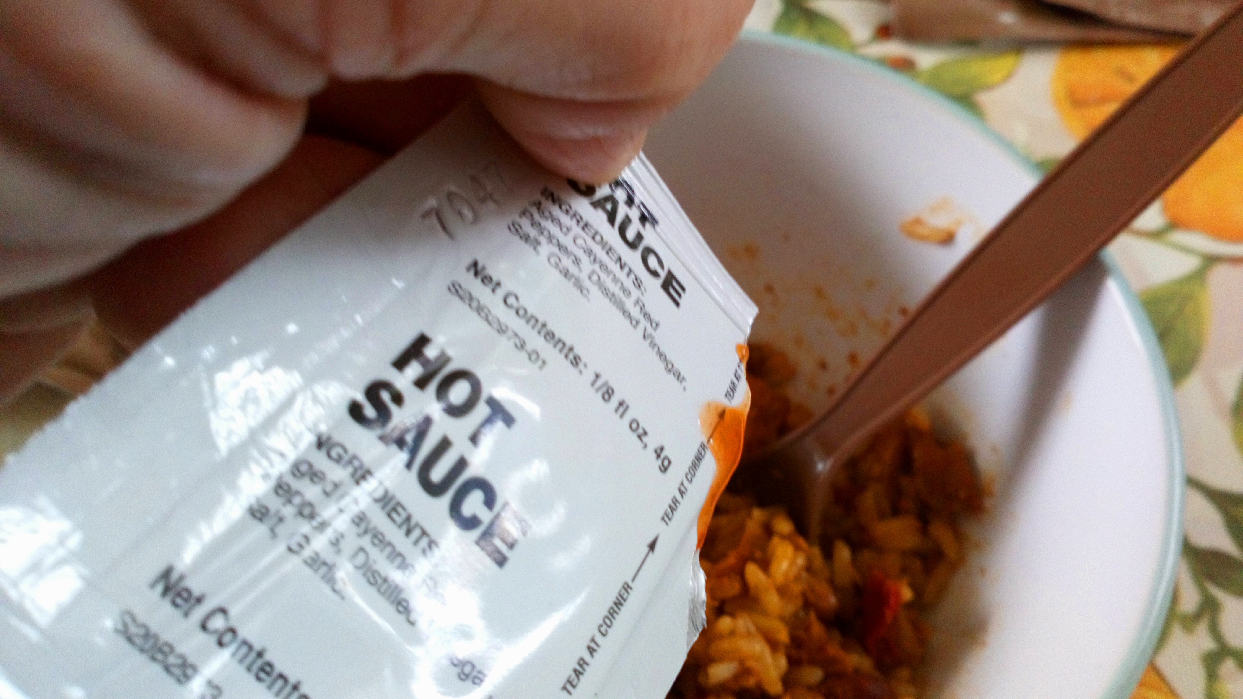 I made up one little wrap with cheese spread and ate it before I put any hot sauce in the mix. Pretty damn good for what it is. It would definitely give me a nice morale boost if I was eating it out "In the field"... As much in the field as I get which would be on a hike or put fishing.