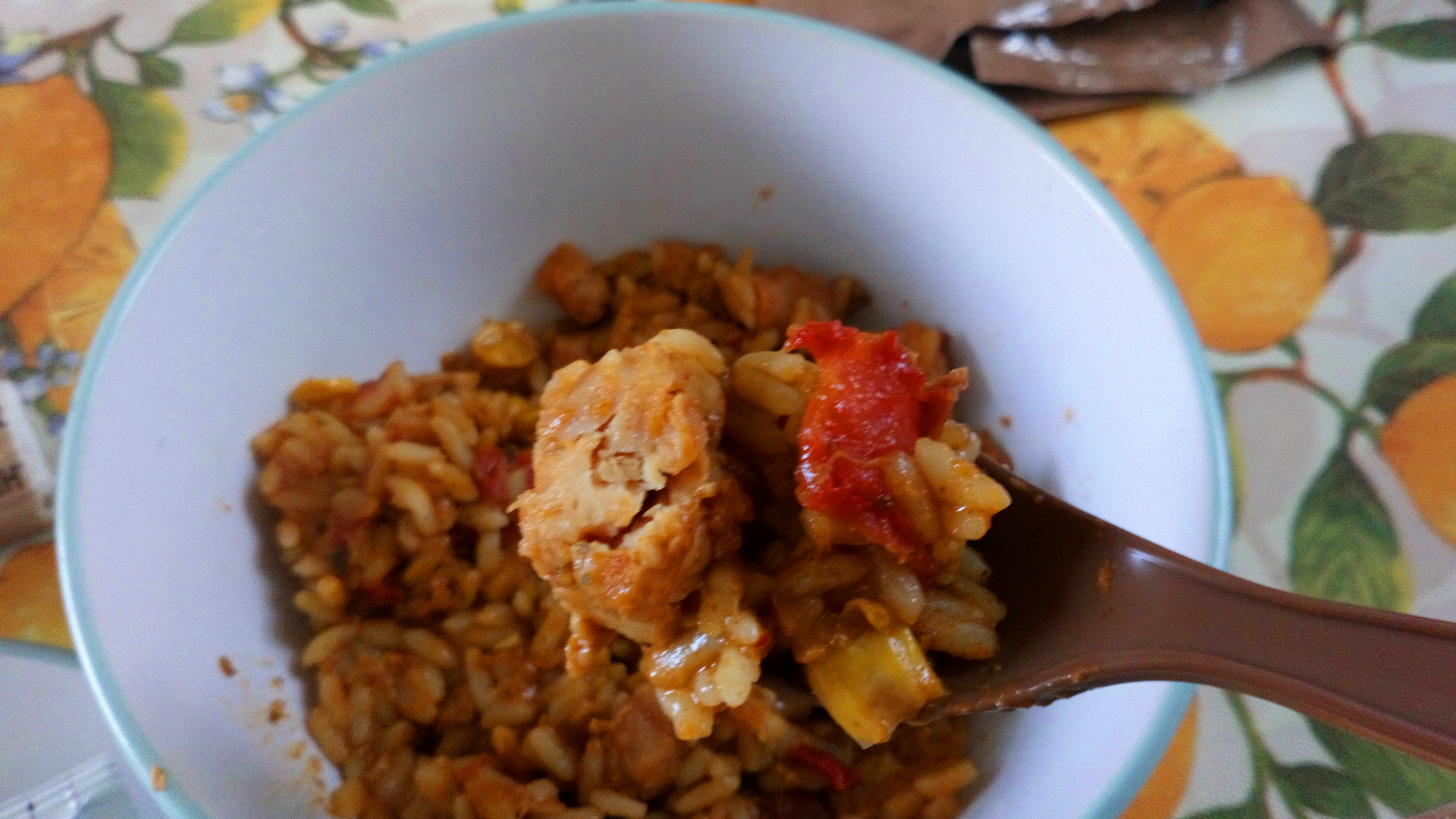 It's not exactly restaurant food but it IS genuinely nice and tasty. The rice still has a tiny bit of bite to it and the chicken has enough chew to know you're eating it.