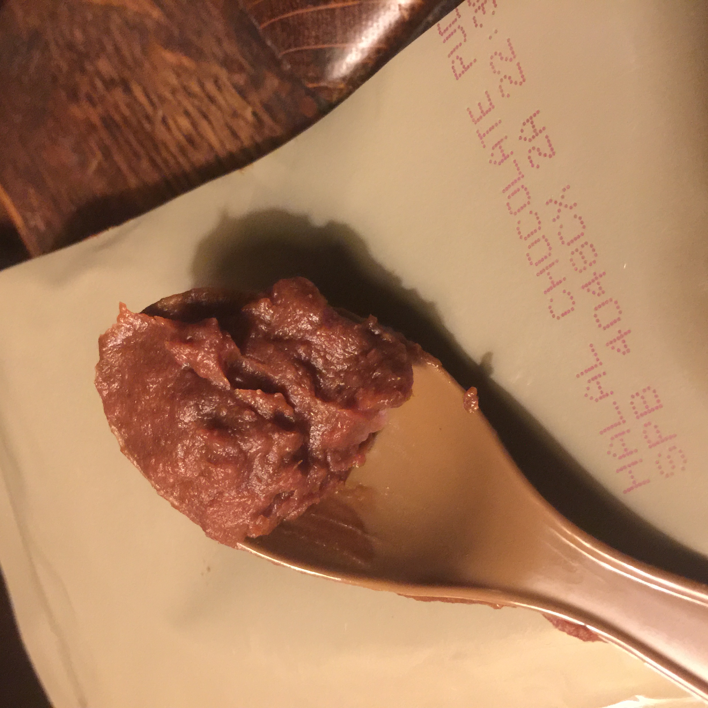 Even stirred up, it is a bit "heavier" or "denser" than Jello puddings which I enjoy and often toss in the cooler for a base trip, but also has a much denser chocolate taste. There is just a trace of preservative aftertaste, but not enough to take off even 1/2 a point. I don't know if this taste and density is common to the MRE puddings in regular meal paks, 'cuz I don't think I've had one to try before.