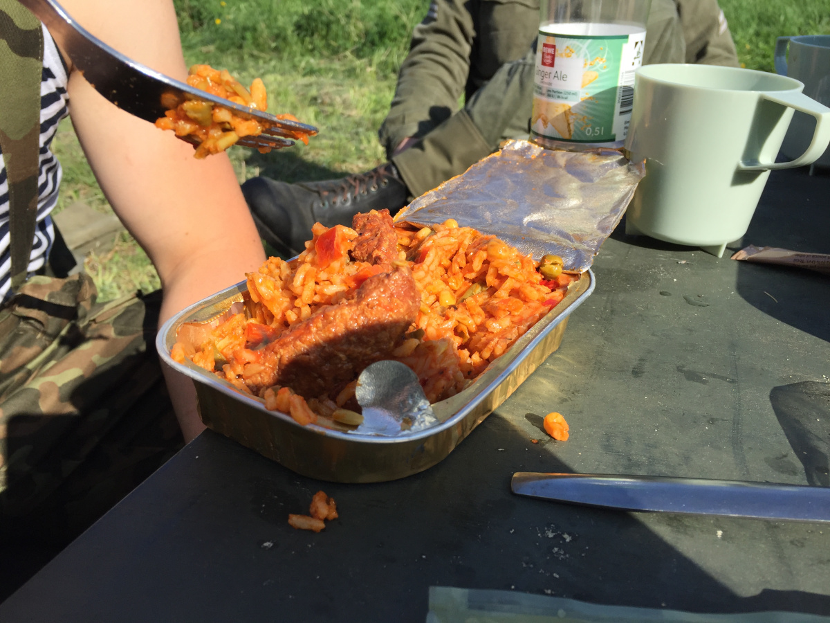 Having lunch from 2007 MREs and Canadian mess kit