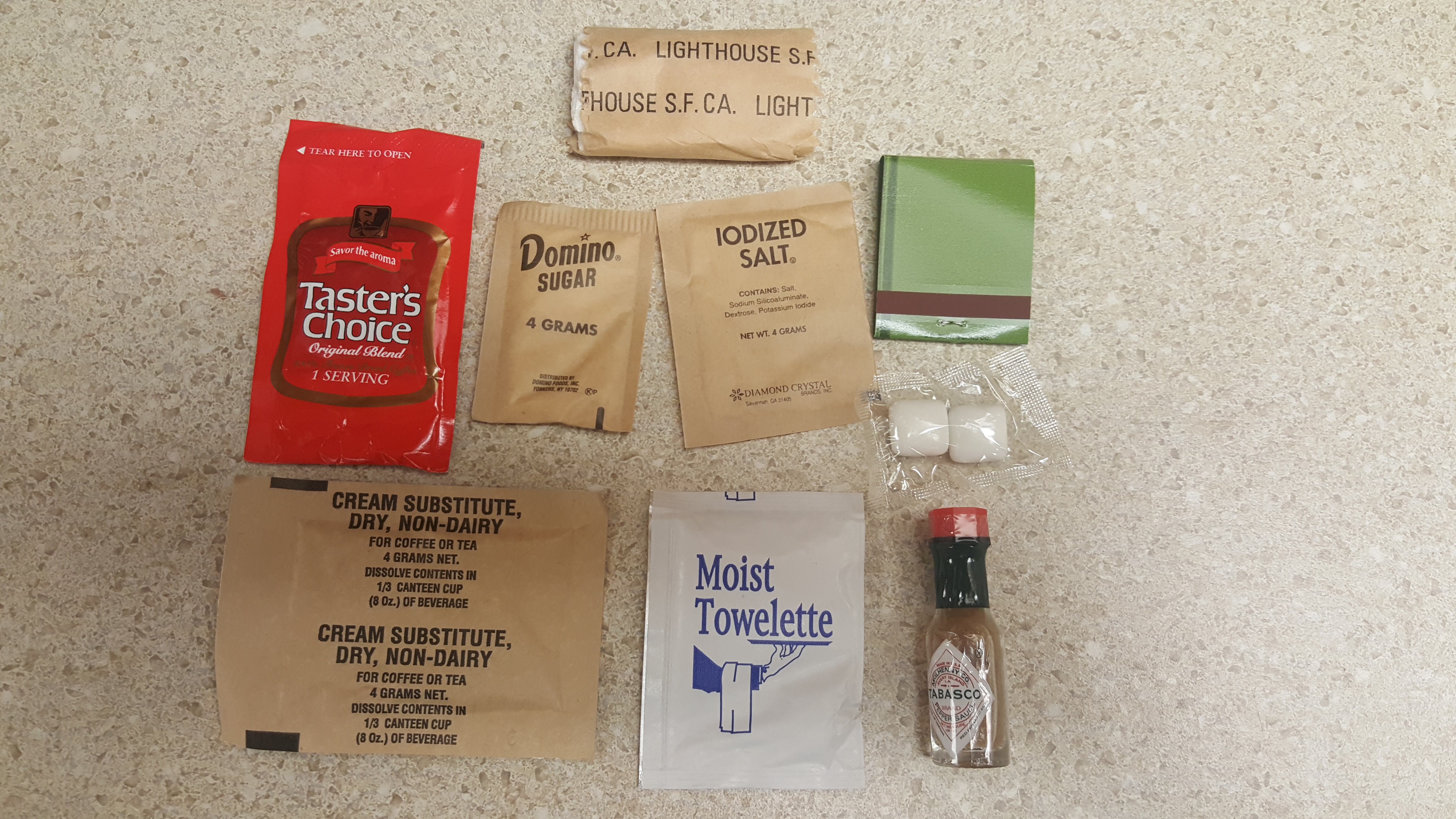 I didn't even bother to open the Taster's Choice coffee. We can all probably guess why. I could tell that it was dry molded just by the texture of the packaging. Overall, this ration gets my seal of approval! I see no reason why they shouldn't bring this menu back.