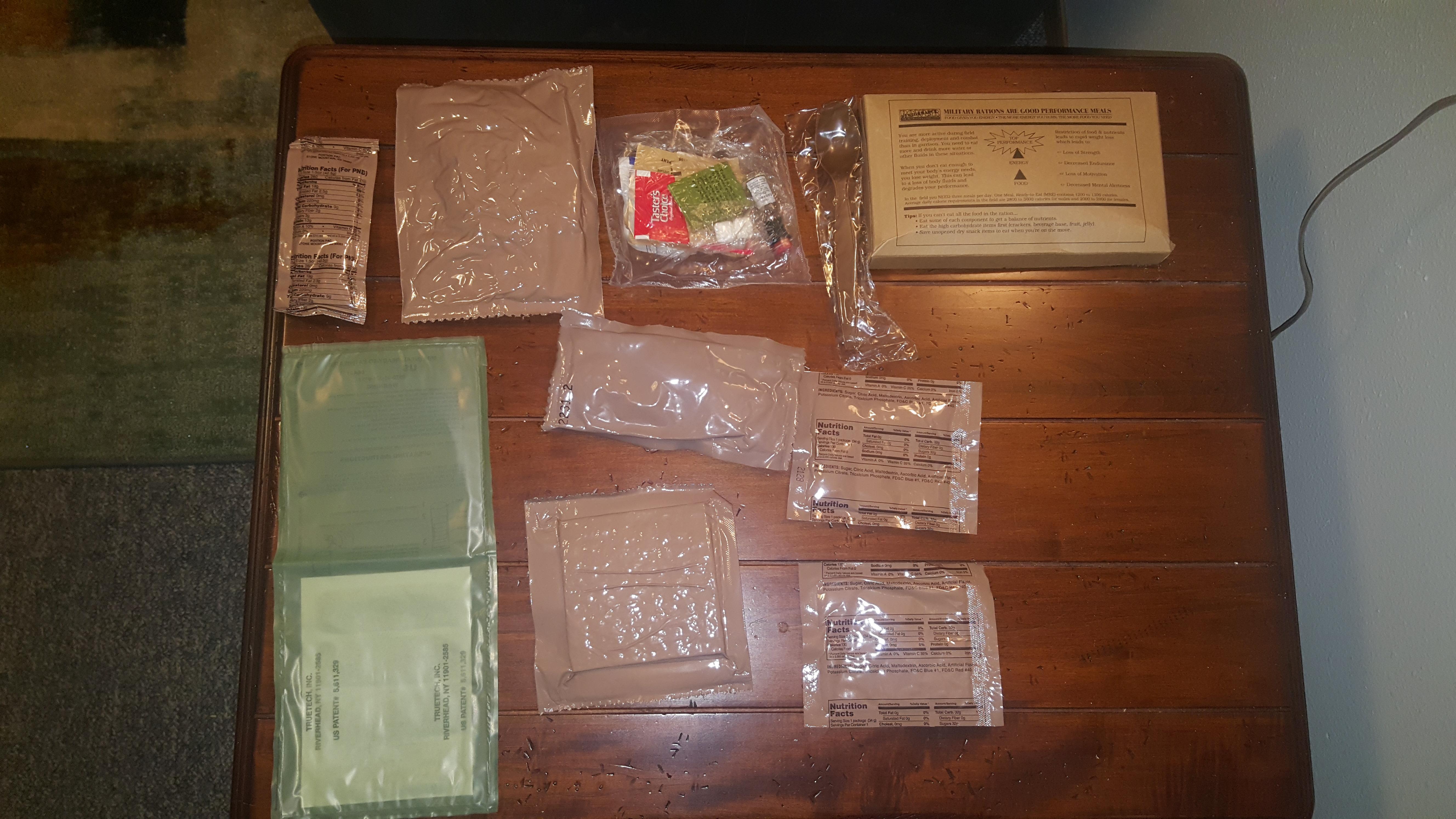 The cheese pretzels were tasty and are just like the new ones. You can never go wrong with those. The crackers weren't baked enough and were pretty soft, so I didn't even finish those. The peanut butter tasted fine as usual and also tasted the same as the kind produced today. The chocolate sports bar is comparable to the chocolate First Strike Bar they put in the current MREs. It tasted about the same, but there was a small coating of chocolate over the bar and was a great desert! I'm glad they still produce a variant of it today.