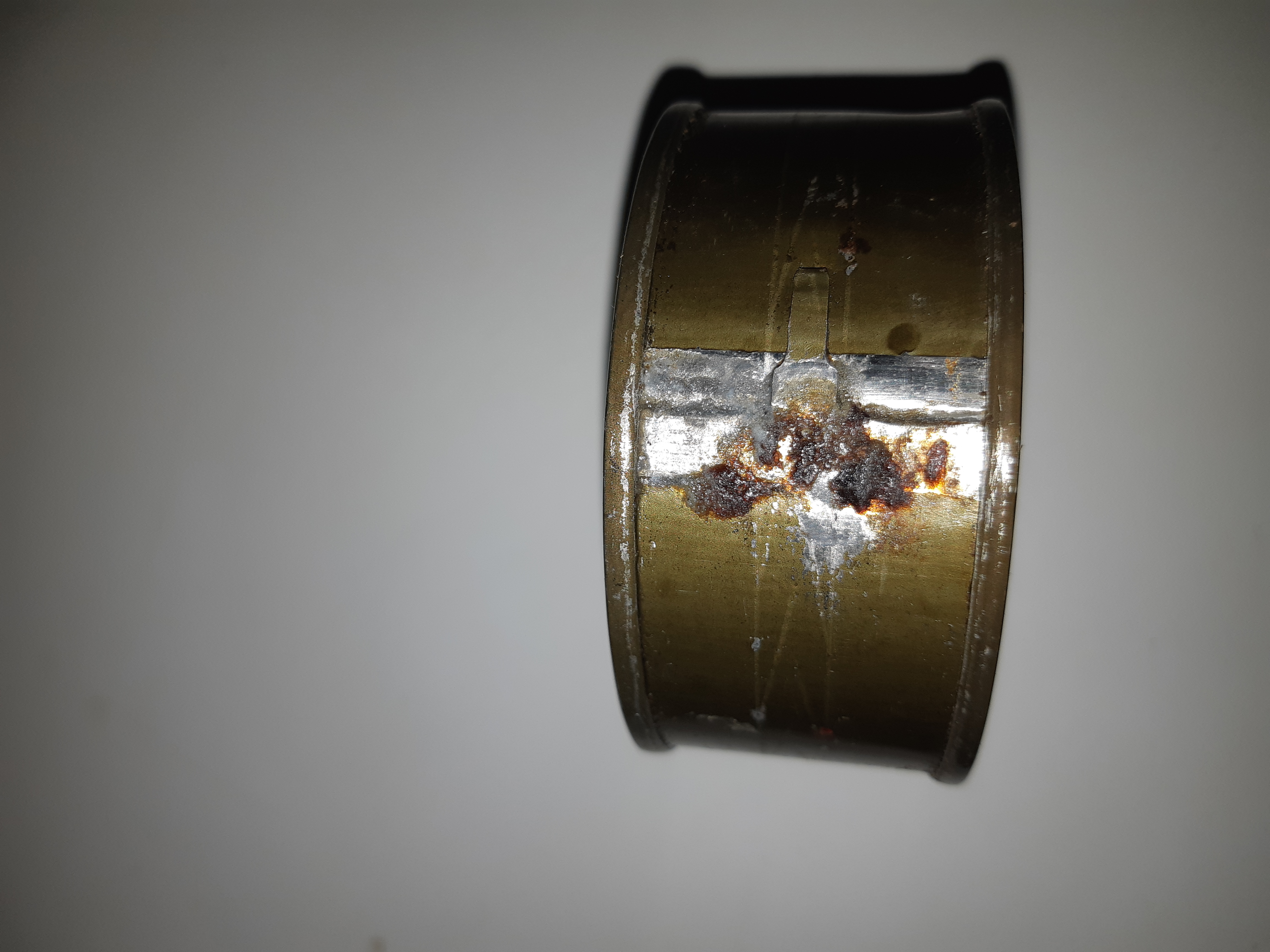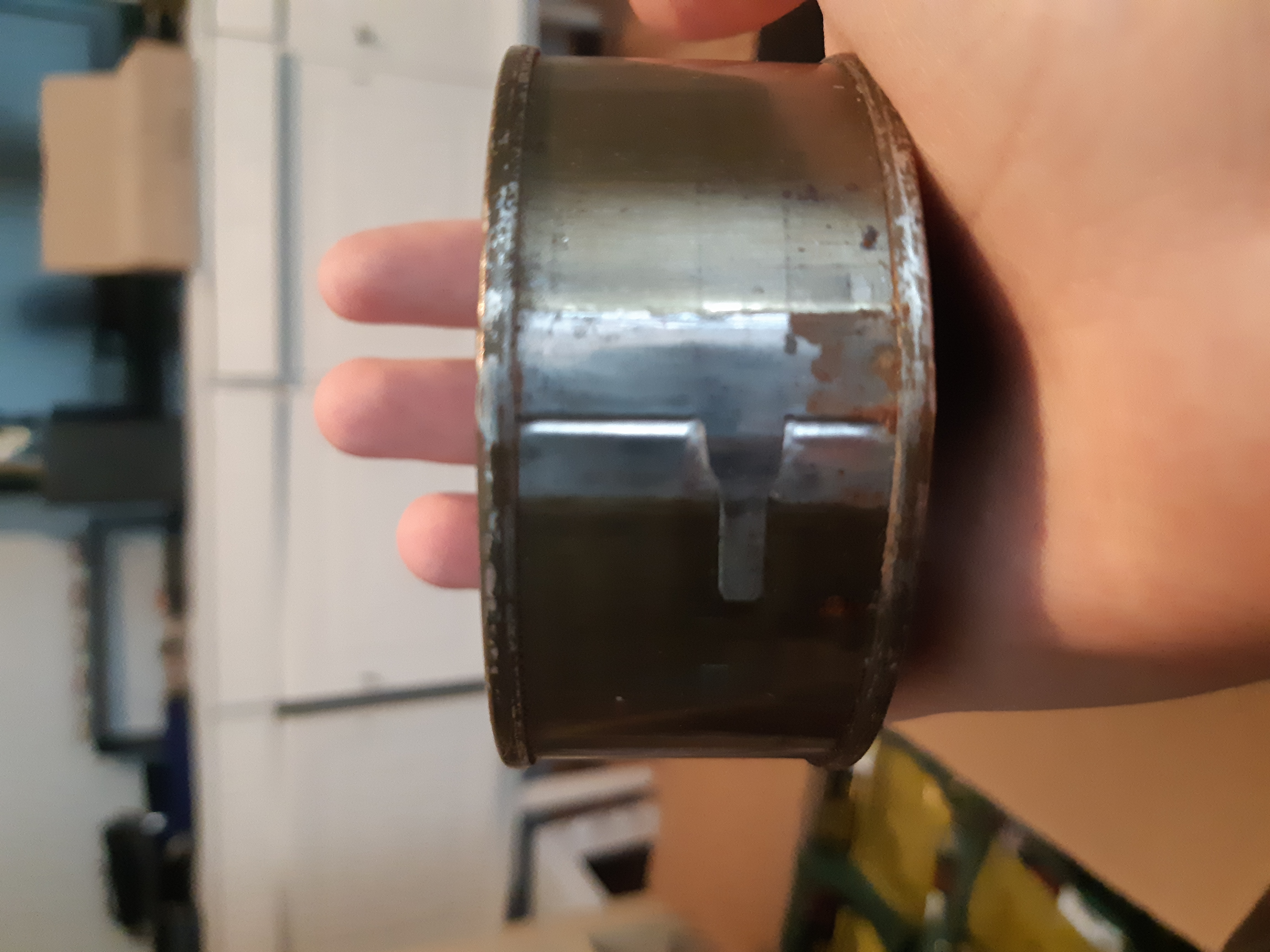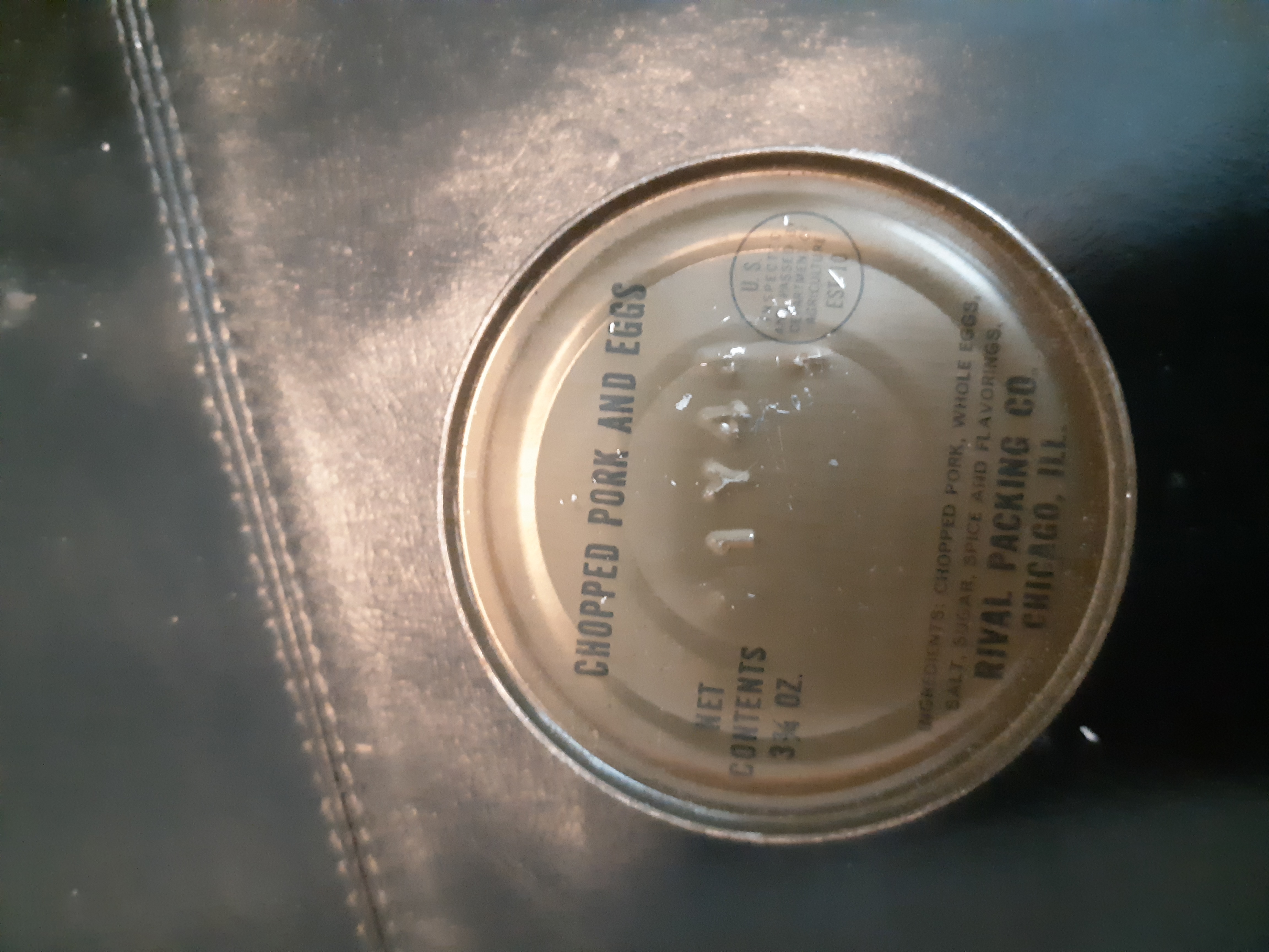 It was missing the cigarettes, crackers, gum and cereal bar. The main can had small amounts of rust around the edges and a small speck on top.