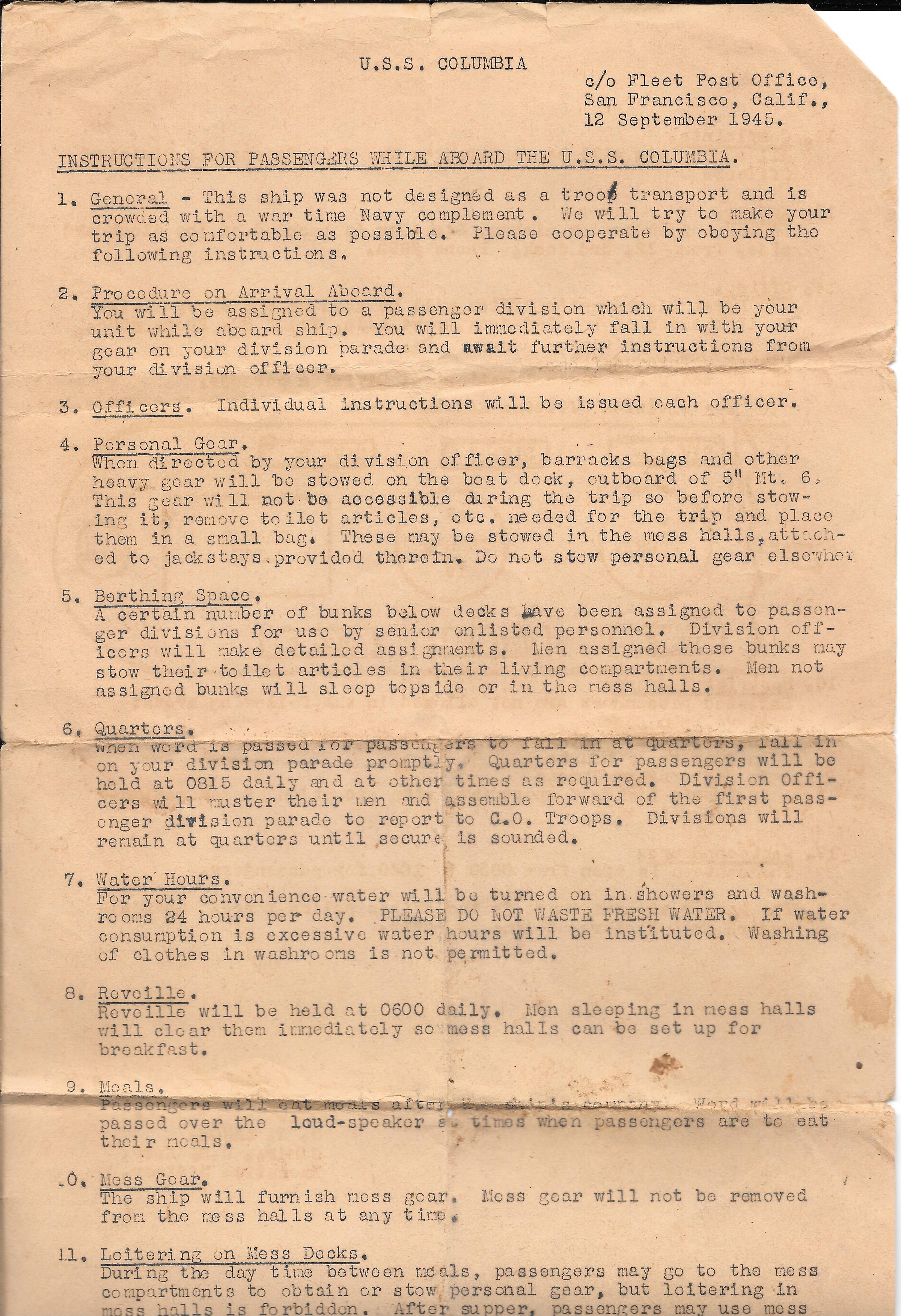 Re: WWII - End of War Troop Transport Ship Newspaper & Welcome Aboard Instructions Scanned Original Documents