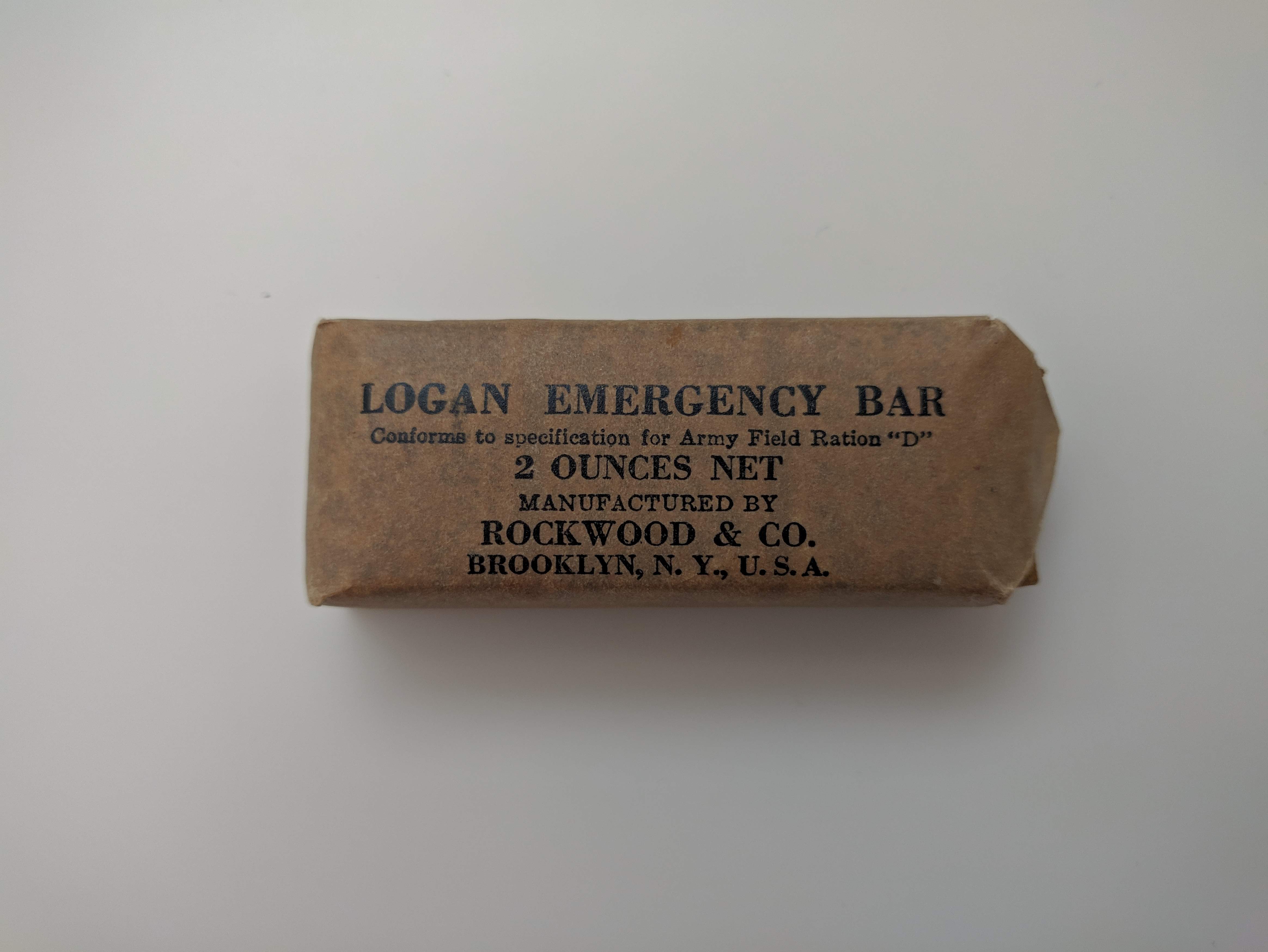 The more I look the more information I find about these Logan Bars with printed "Logan Emergency Bar" on the top - They are really unique and unknown compared to the og "U.S. FIELD ARMY RATION D" ones. I sent mail to National Archives and Hershey archives and to my WWII Ration friend, if I get any more info I will send it back - It looks really promising.