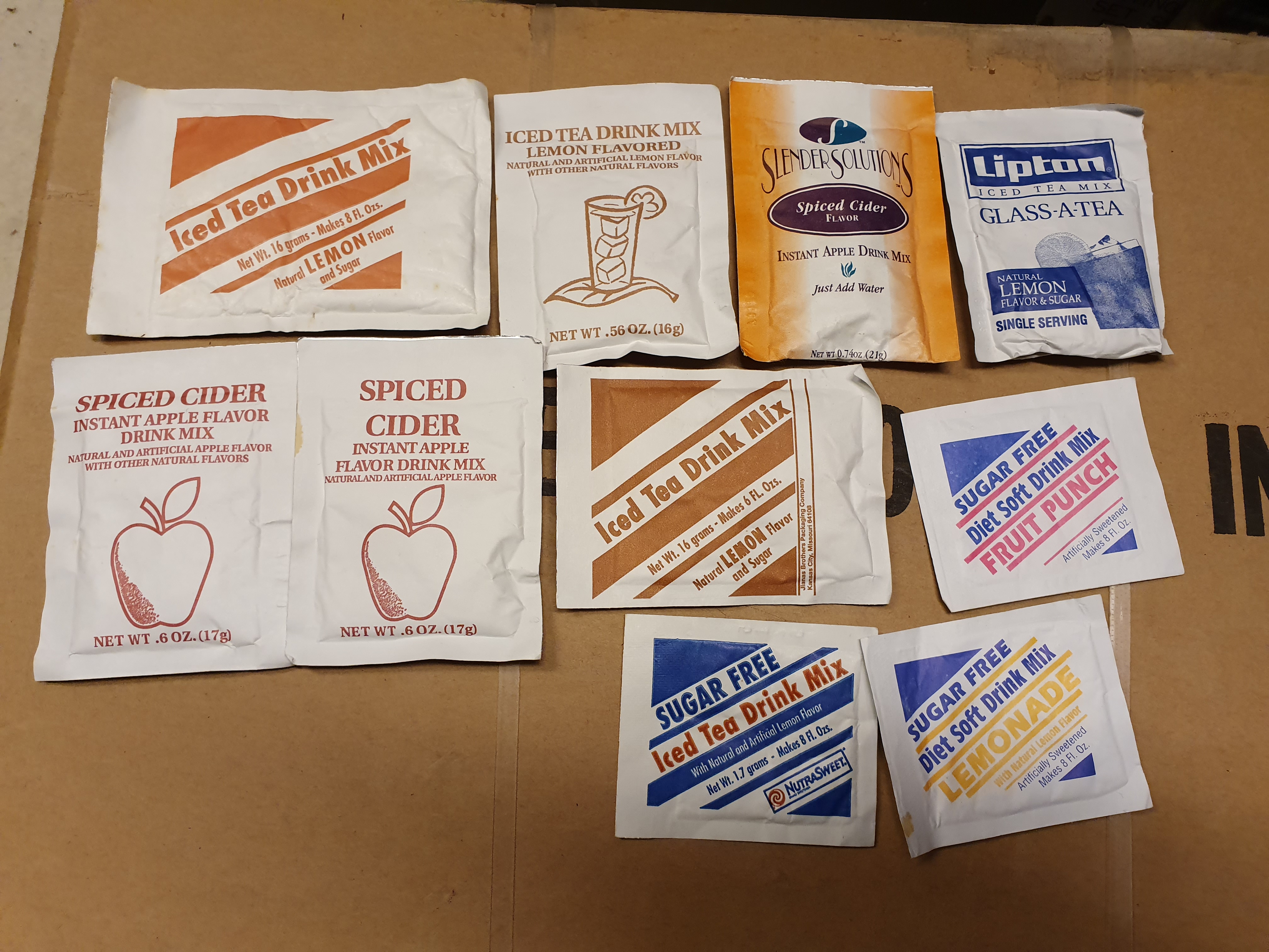 next is ice teas and soft drinks that was added in the mres from 1990s and up,the 3 sugar free drinks came in 1994/95 the rest followed when the mres turned tan bags.