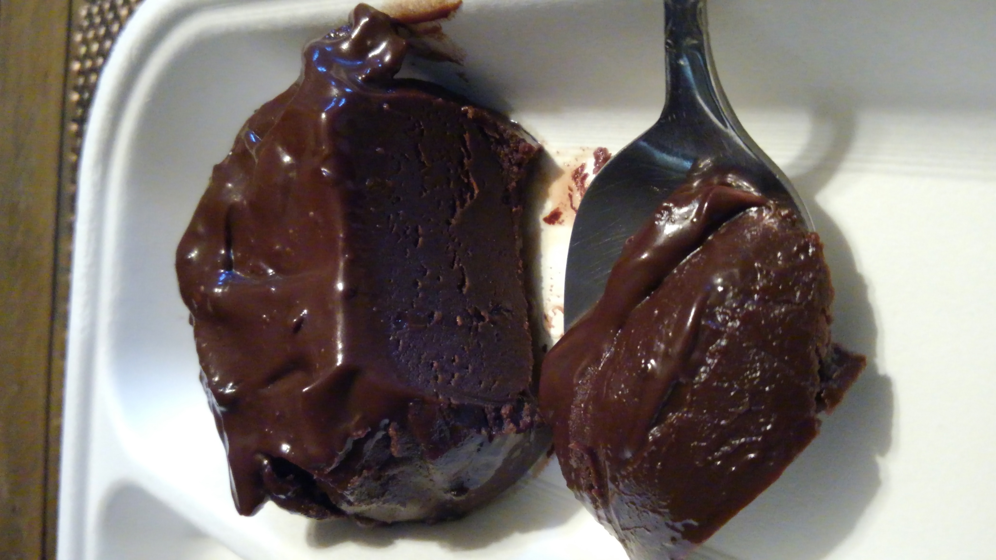 What appeared to be the frosting was more like a pudding. Very dark, very rich and not too sweet. The cake itself was reminiscent of a flourless torte. It was dense, smooth and very rich. The whole desert was surprisingly less sweet than I expected. It was a decadent dessert and altogether chocolate perfection. There was a very slight grittiness to it that I could not identify. I have a feeling it might have something to do with the age, given the condition of other components in the meal.