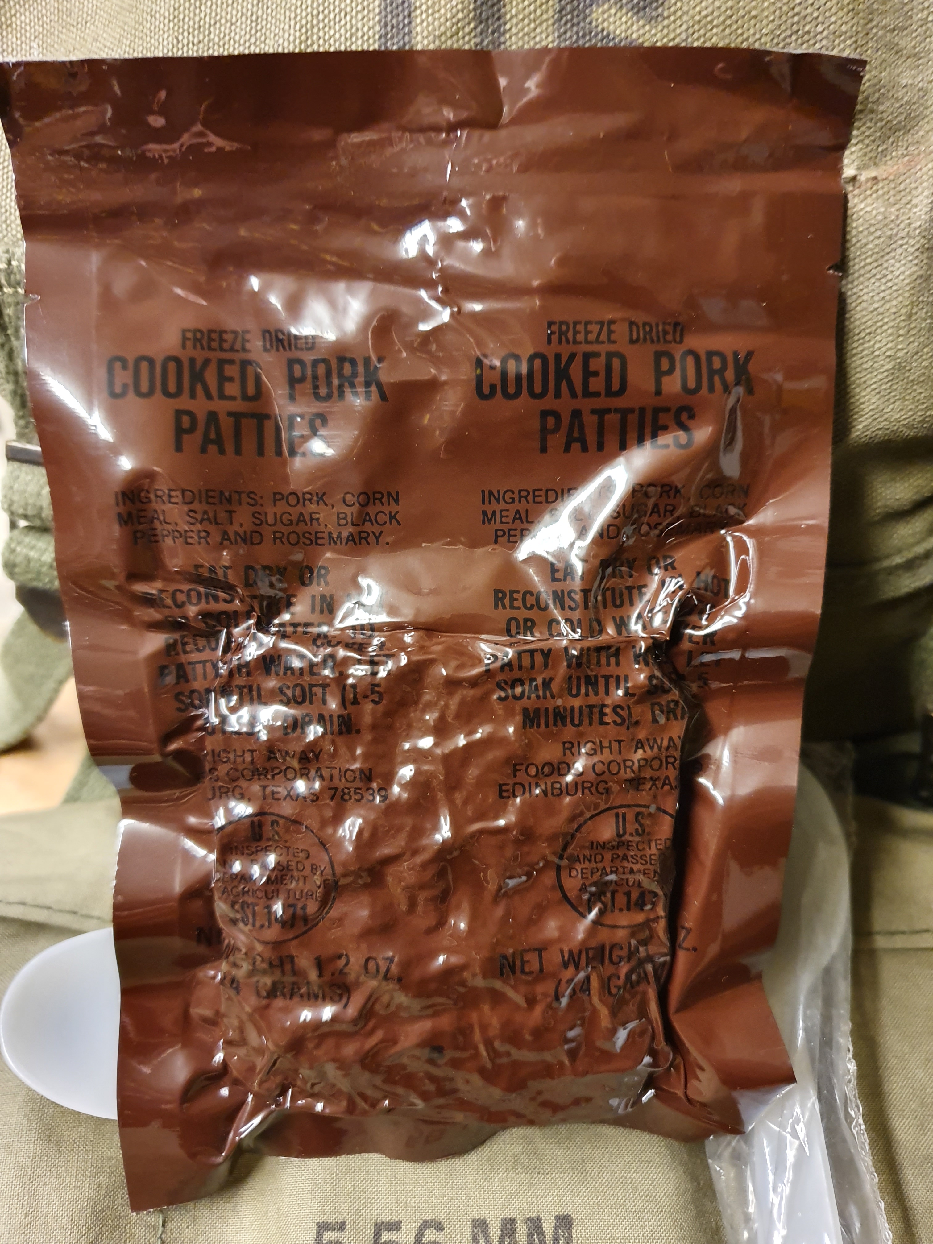 this the potato patty this is from 1983.the USMC used to add the catsup pouch in the potato pouch and add water back in the days.