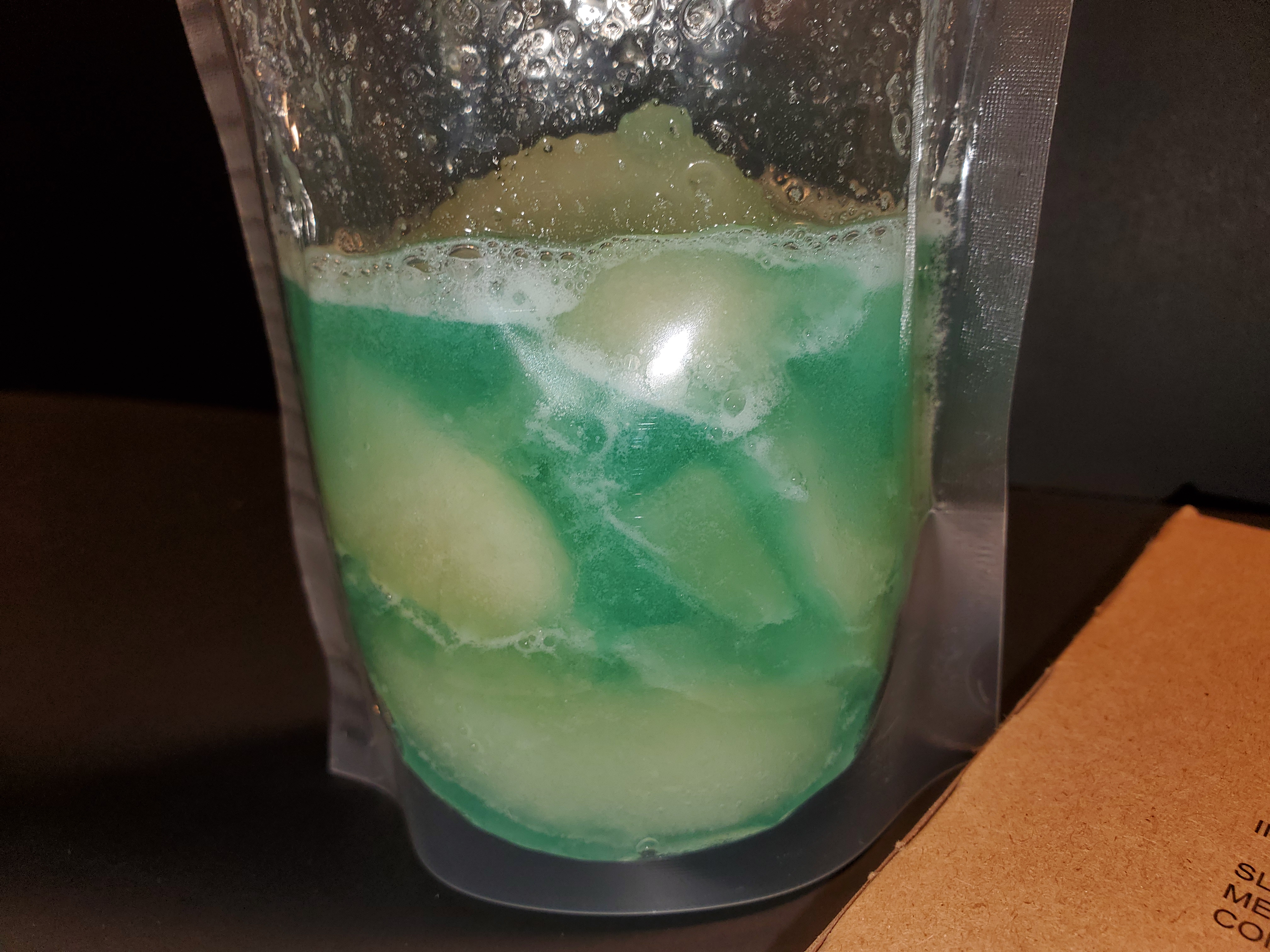 Canadian IMP ice beverage base + apples and mix in beverage bag. Lordy it's a winner. Taking half to the freezer and reporting back.