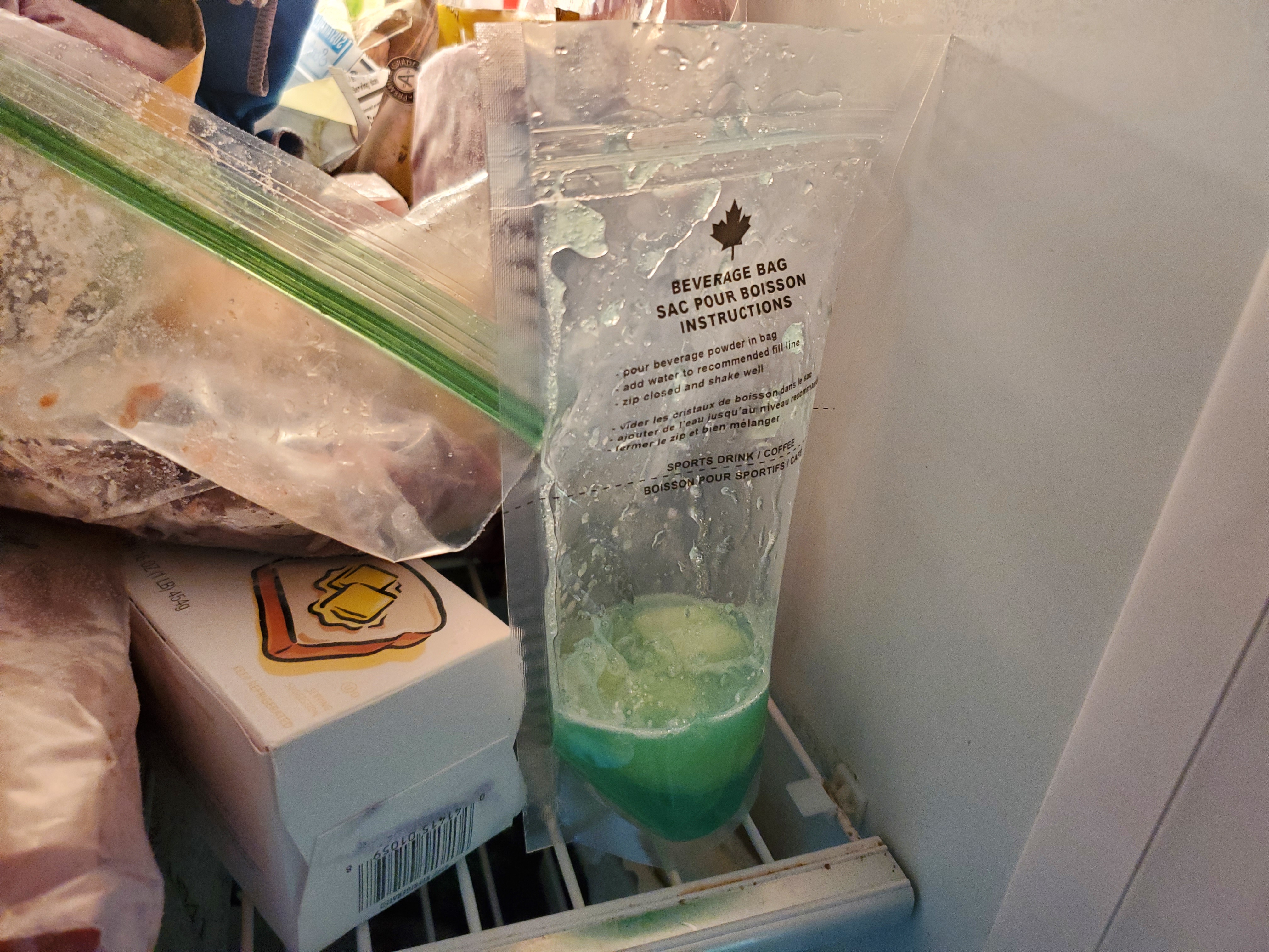 Canadian IMP ice beverage base + apples and mix in beverage bag. Lordy it's a winner. Taking half to the freezer and reporting back.
