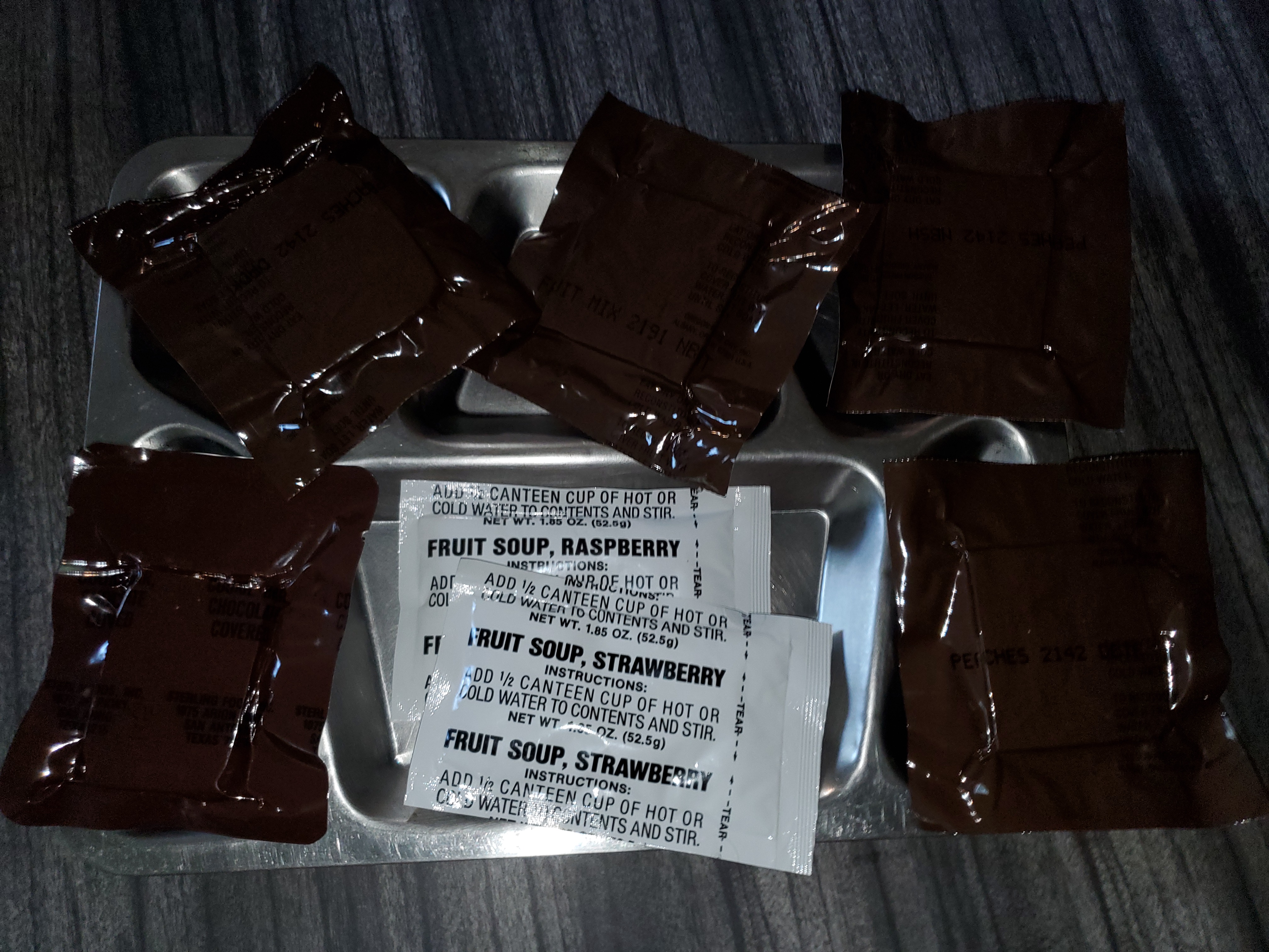 I wonder if something similar could be done with the US MREs. i.e. spiced apples with orange beverage base? Ugh, no way. :P How about mixed fruit with lemon lime beverage base? That might turn out, unfortunately I don't have any way to try it right now.