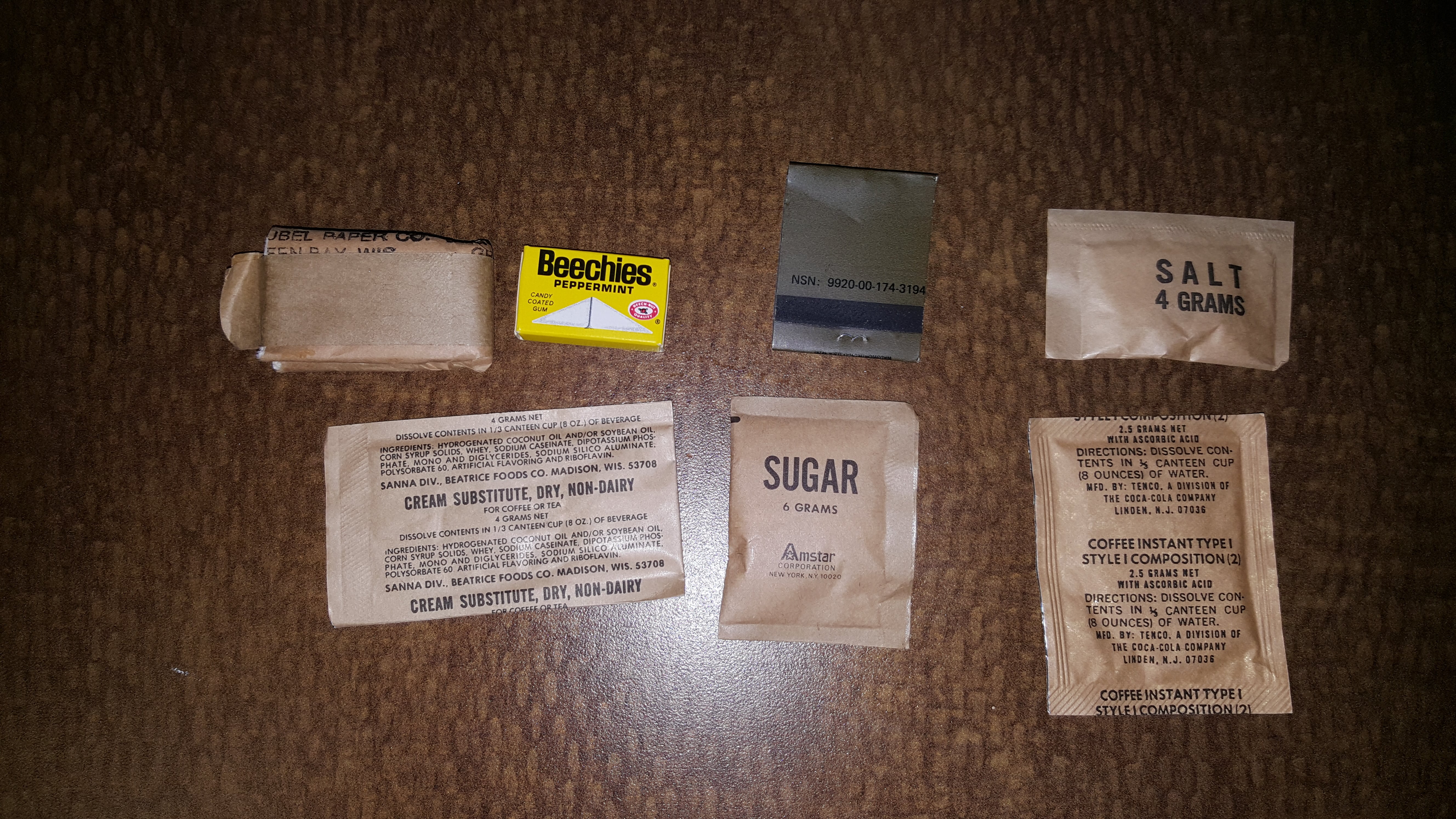 The chocolate toffee disks were actually somewhat tasty! If they had a cheap dollar store knock off of a Symphony chocolate bar, that's would it taste like. In the LRPs of the same age, these haven't held up well in my experience. They must last a lot longer if they are not exposed to air.