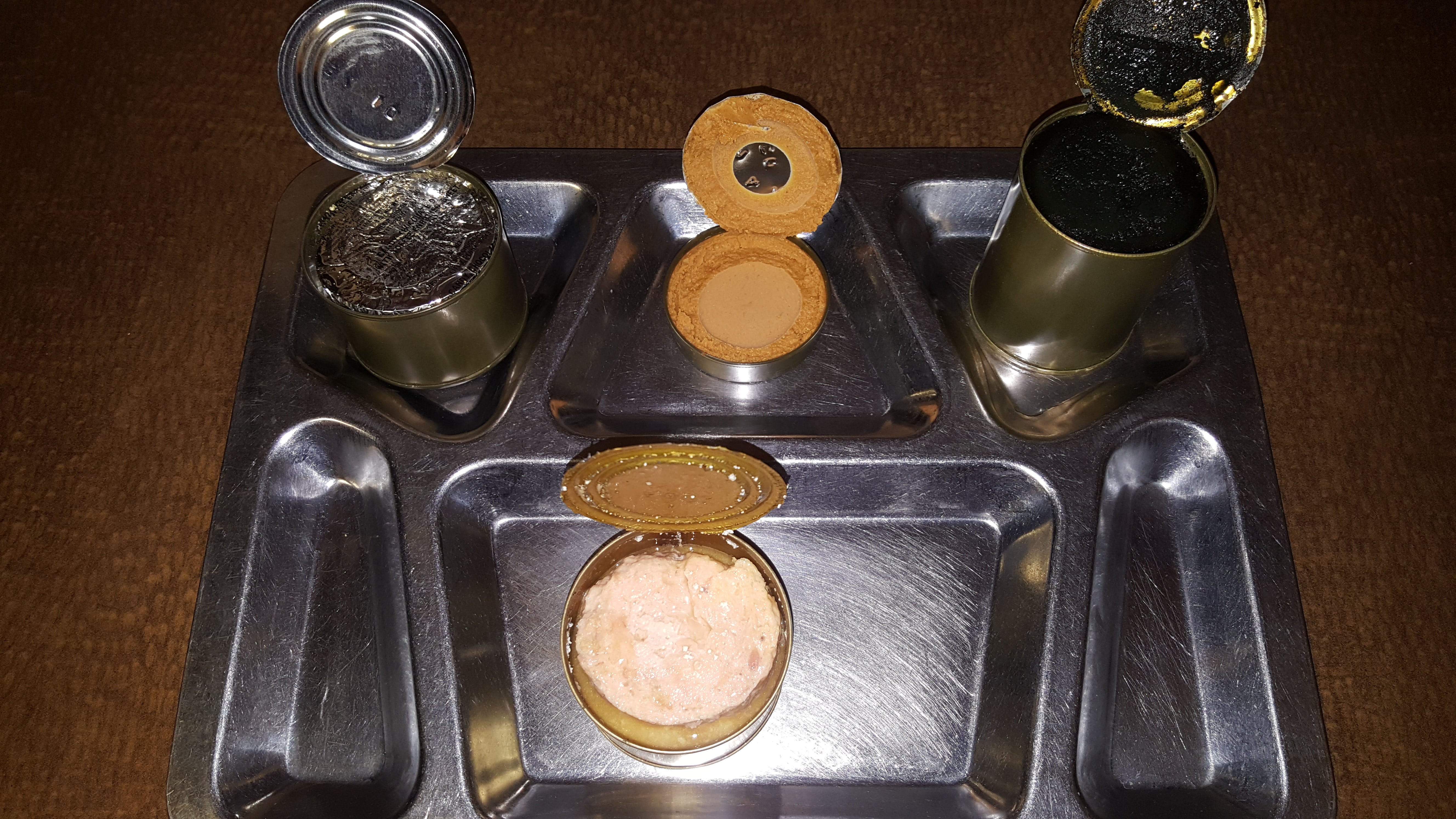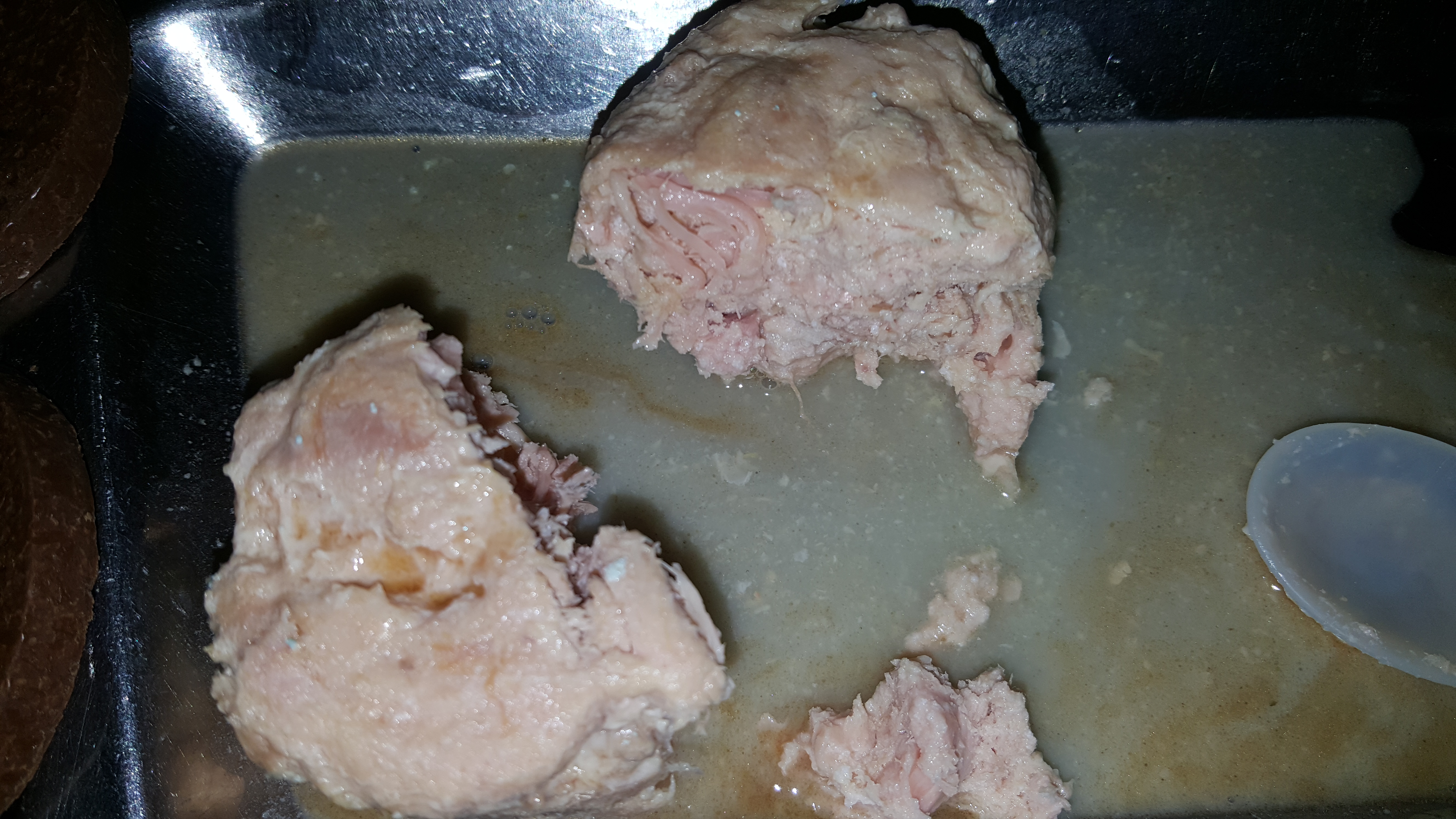 Since face masks are pretty abundant these days, I decided to put one on before opening any of the cans. When I opened the canned turkey, I noticed a very audible "hiss" noise. While it smelled faintly like turkey, it also had a very metallic smell. My senses couldn't yell "NO!" any louder if they tried since the weird metallic/turkey smell almost made me gag. I couldn't bring myself to try even a small bite of it.