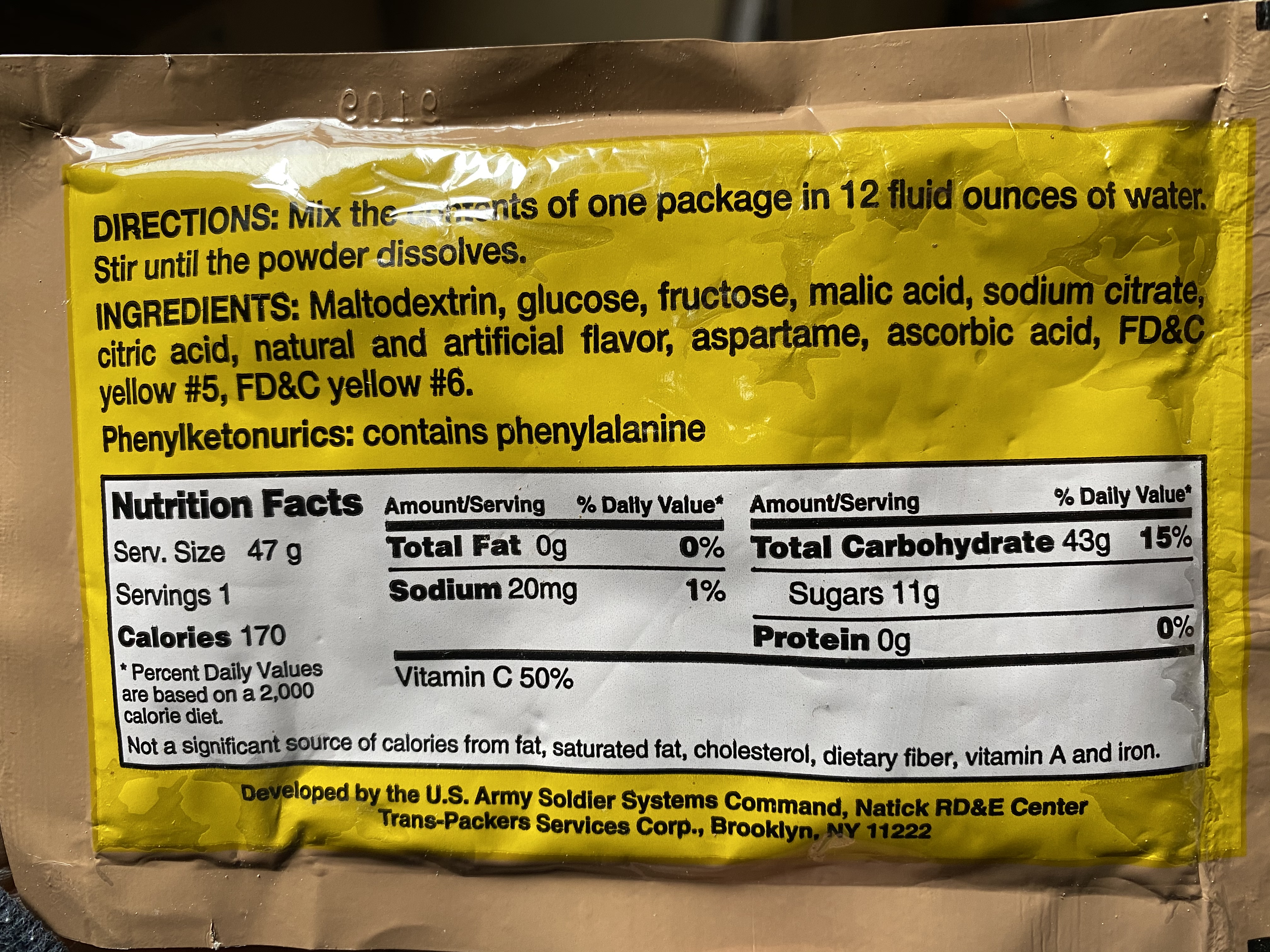 I really don't have a ideakoreyyy1 wrote: Wed Oct 28, 2020 10:21 amSays developed by Natick and never seen this before, maybe something that will go in the Close Combat Assualt Ration?koerky75 wrote: Wed Oct 28, 2020 9:56 am I never saw this beverage before. Code is 9109. From which Mre is this one??A6508D18-94E3-4A25-9F15-AE803BC46235.jpeg371A045F-D2D8-4CBB-A4A4-0842742E4E40.jpeg