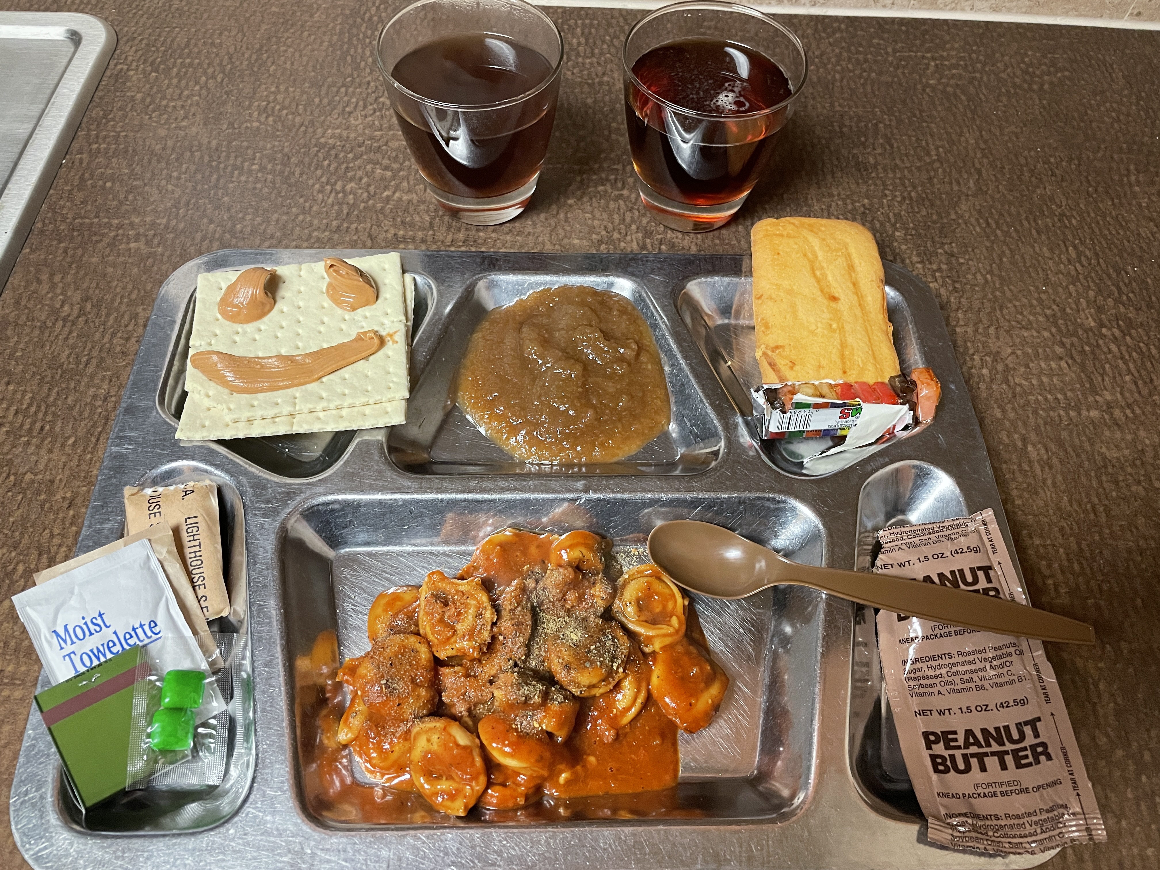 The crackers and peanut butter tasted great and as they should. Lastly, the apple cider and iced tea included in the accessory packet gave me the opportunity to end this ration eating experience on a positive note as they tasted great.