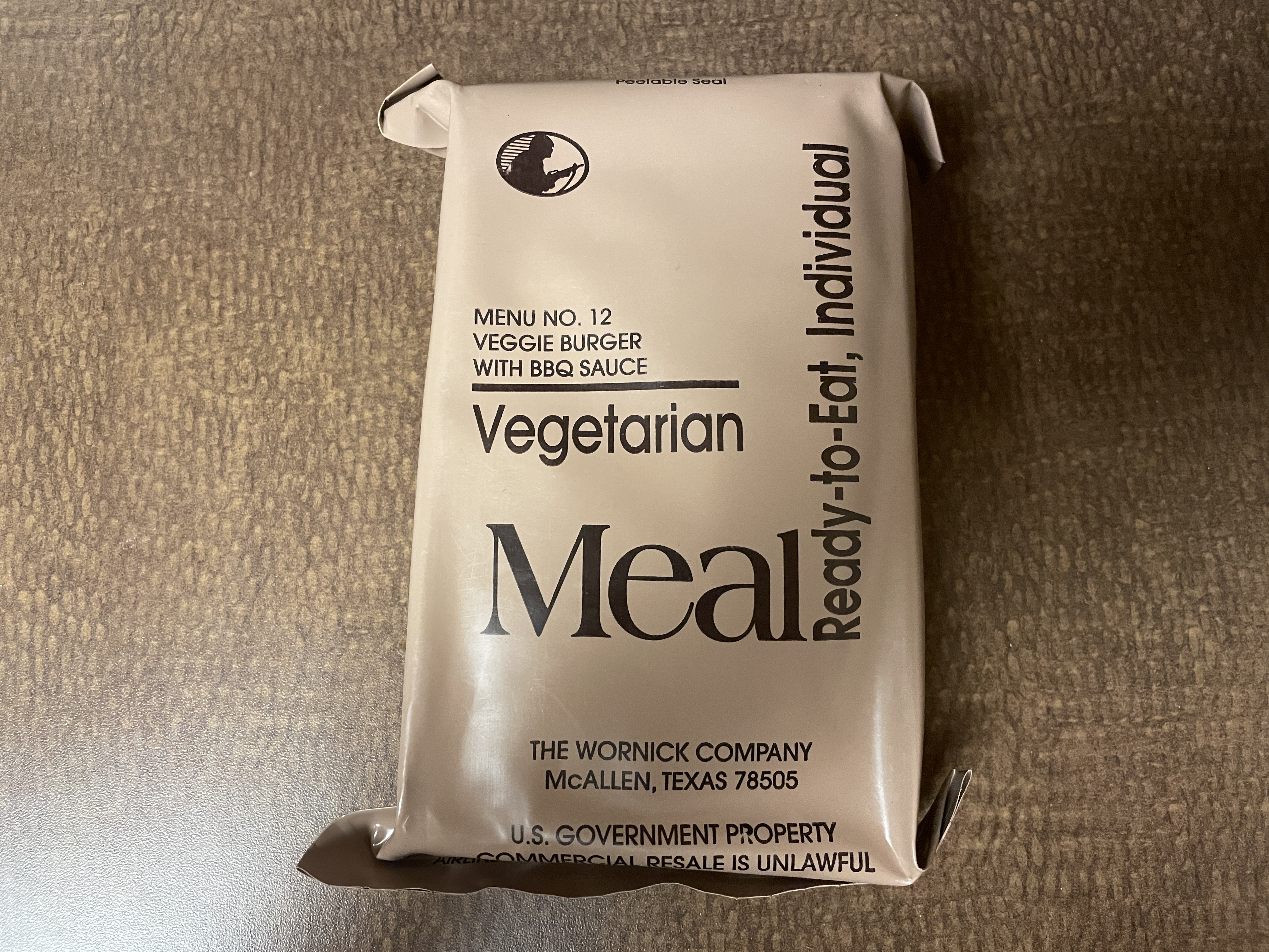 Here is the veggie burger in its retort pouch. And the items included in the accessory packet. The entire meal prepared! This particular MRE wasn't stored in the best of conditions since some of the components were pretty spoiled. The raisins were really sticky, dark and tasted really ripe and fermented. I couldn't eat too many of those. The potato sticks weren't too bad but I could tell the oil or something on them was starting to go as they did taste slightly sour but not bad enough to prevent me from eating them all! The cinnamon scone, although an interesting addition to this ration, also went bad. It tasted like eating a bar of soap, it was that sour. Of course, it's not supposed to taste that way but I think this ration was stored in a hot climate for a prolonged period of time and that's what led to this.