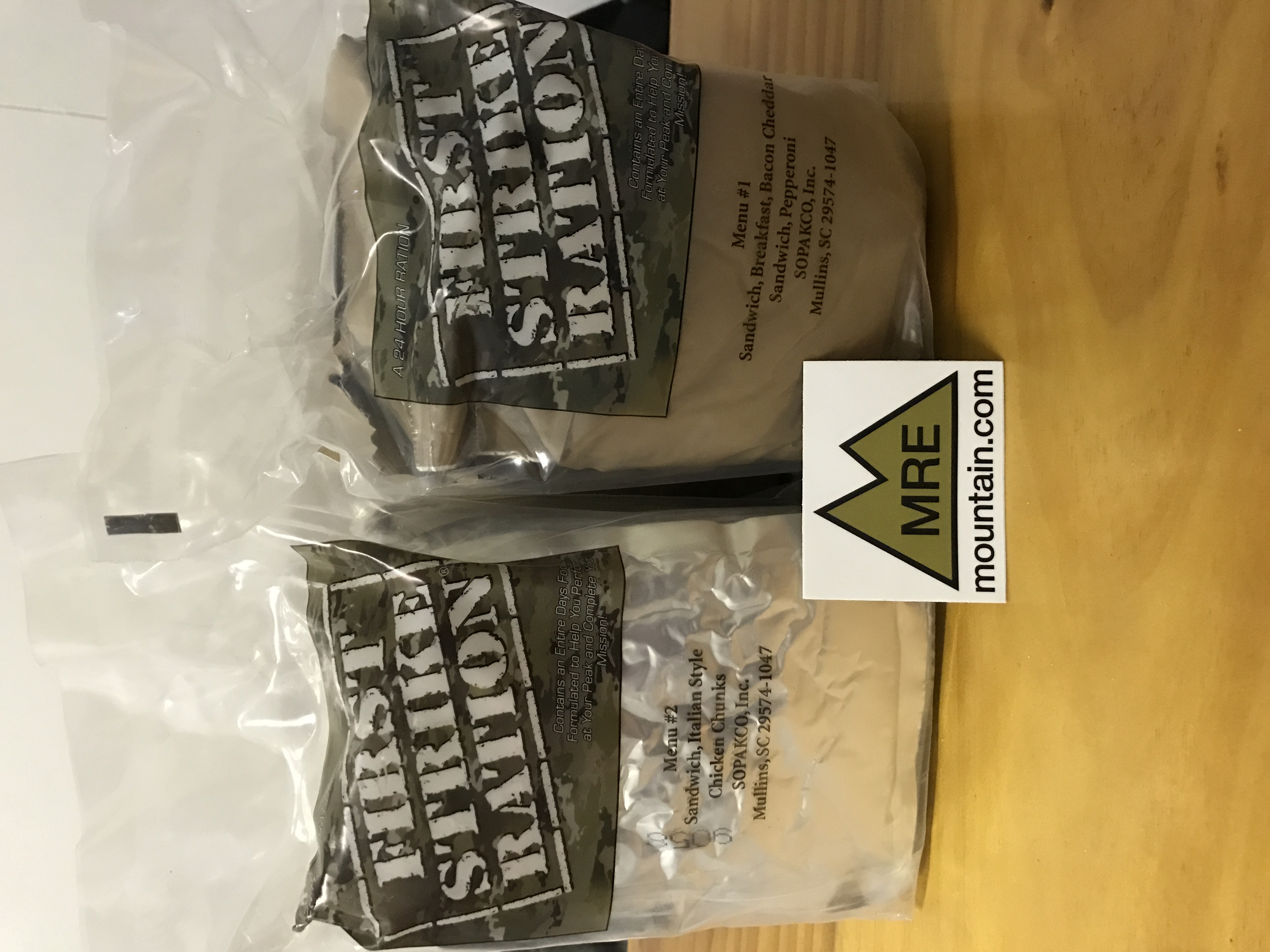 G'day, I would like to share with you today my review of a first strike ration menu #1 packed in 2019. The menu for the ration was. Bacon, cheddar breakfast sandwich. The other was a Pepperoni sandwich. I purchased this an another First strike ration from MRE Mountain. So let's get onto the review.