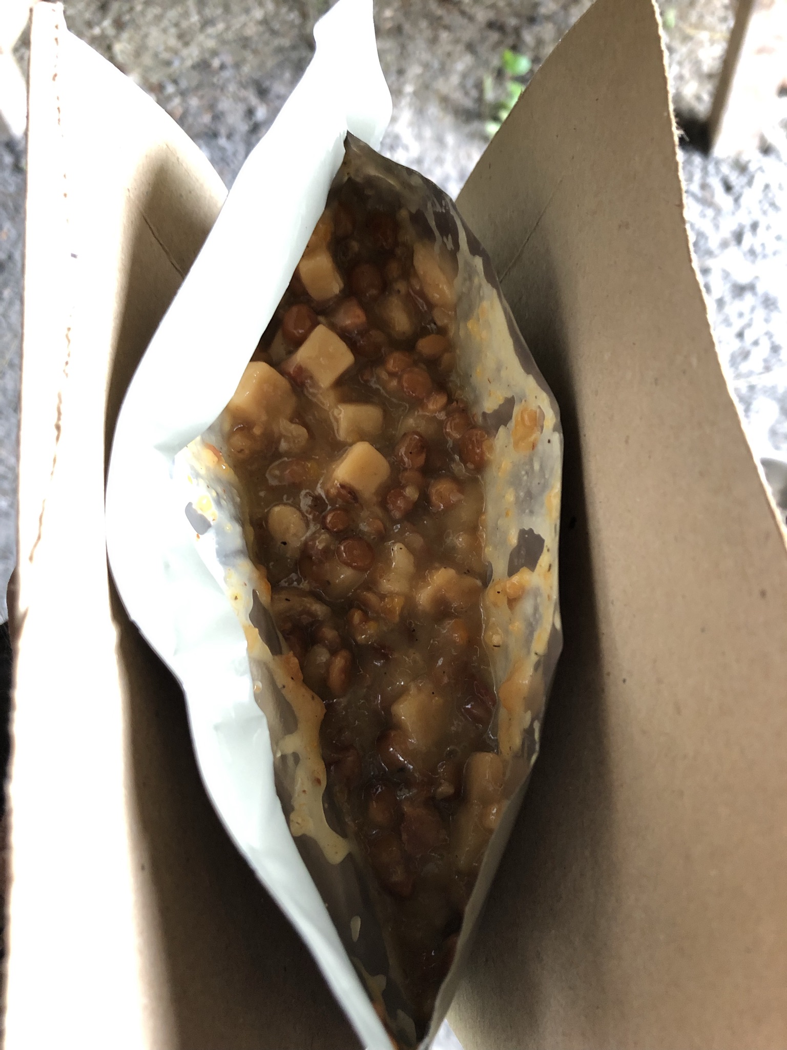 The lentils stew I bought in Kentucky meetup at Bobs company.
