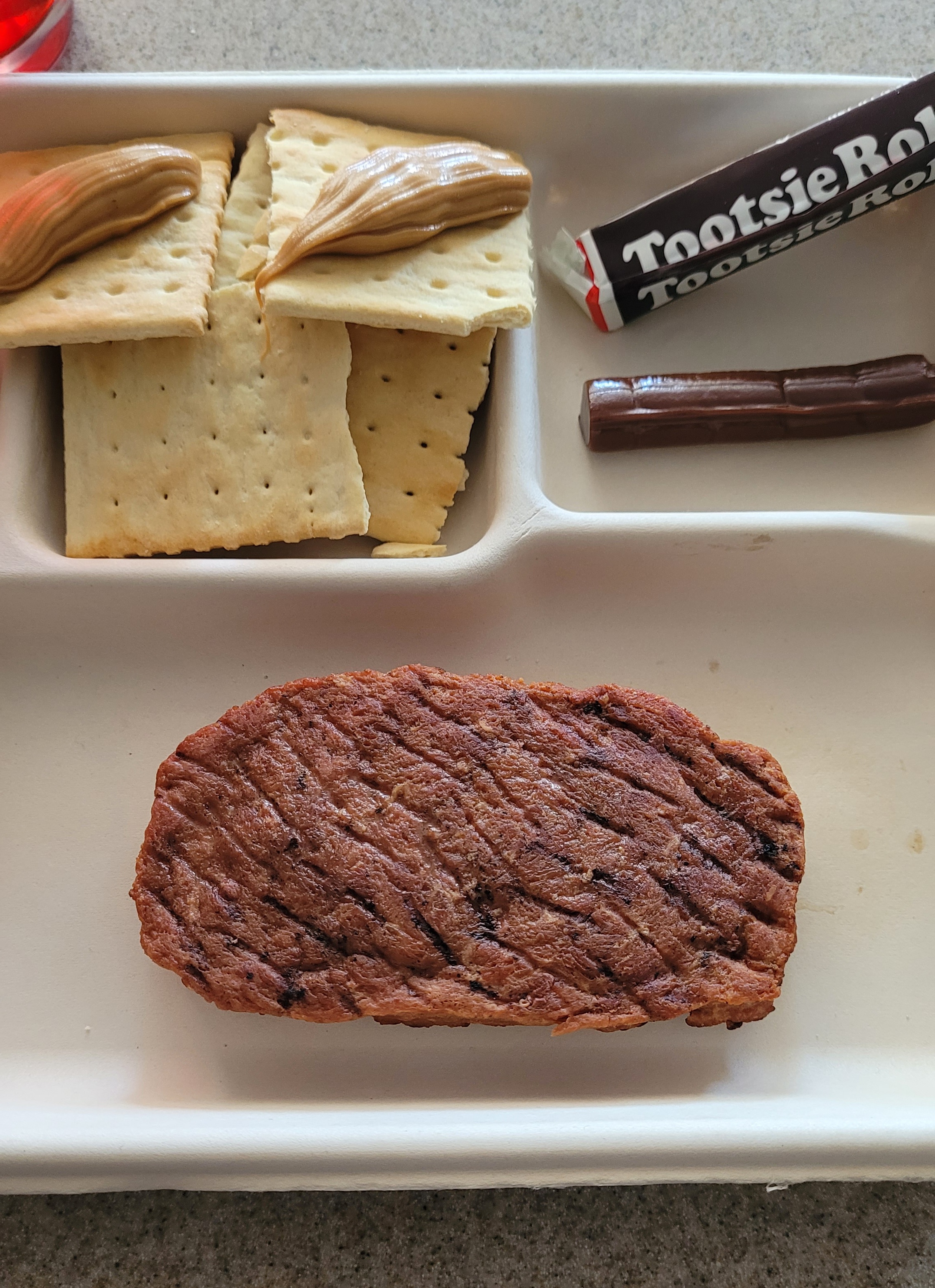 The first coupla bites of the mexican rice seemed ok, but it did have a strange stale after taste and was kinda bland. Coffee was bad, shocker. This cherry drink was PERFECT. NO chemical taste at all. I was tempted to drink it all but I didn’t. The FRH heated up but not enough to heat the steak. Glad I finally got to try this meal, but was kinda disappointed that there was no dessert.