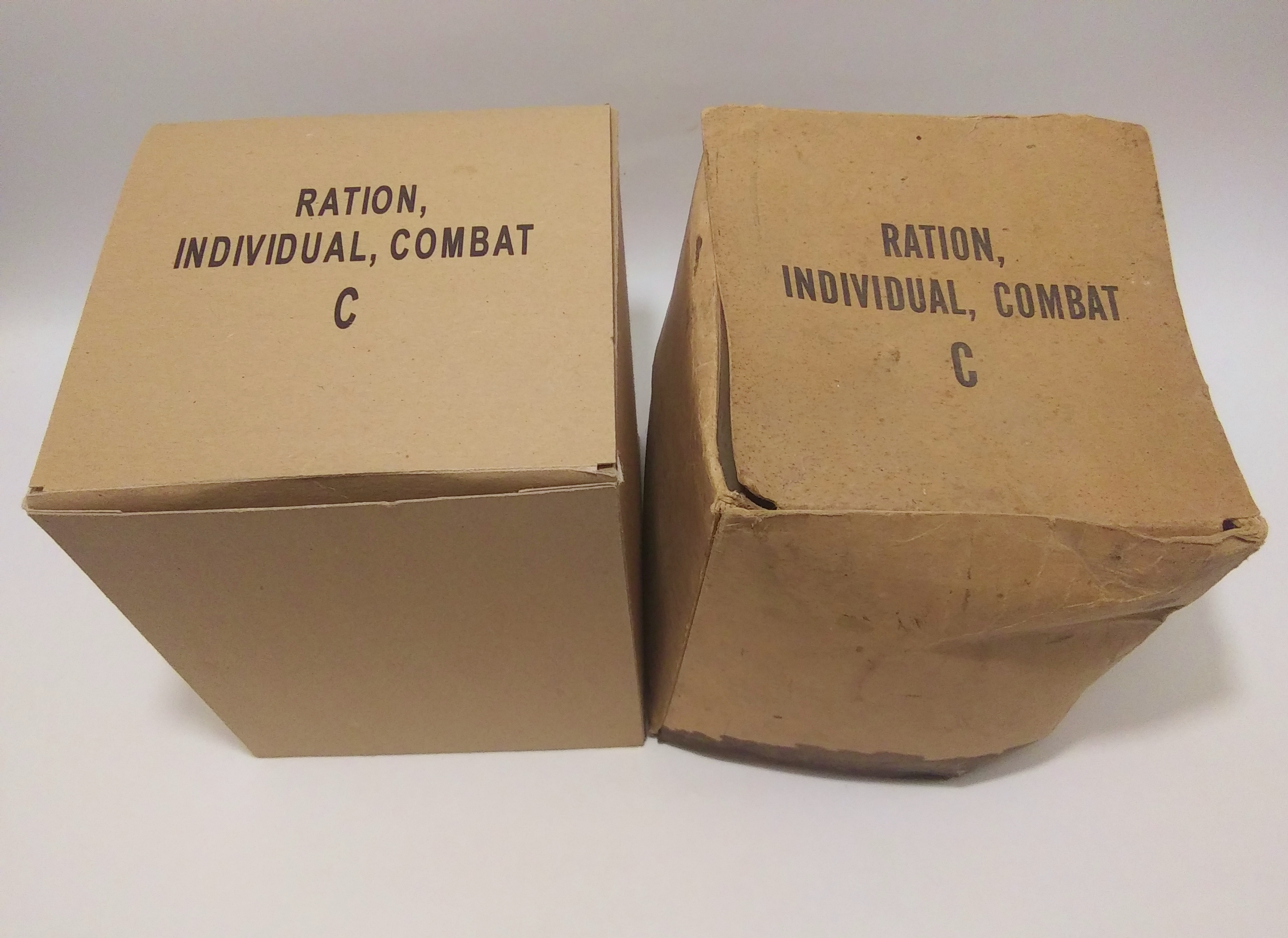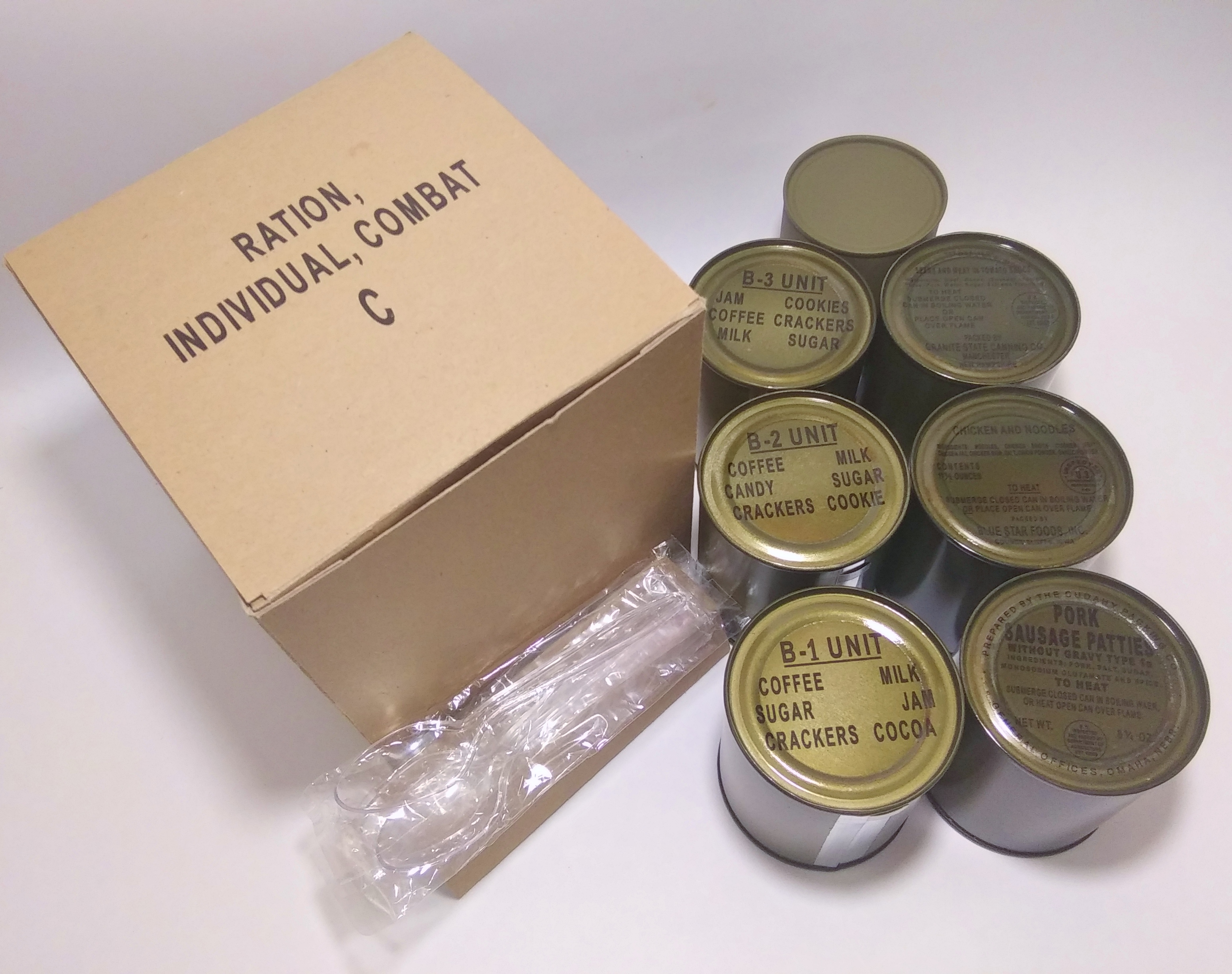 I happened across your post a long time ago, but am now just getting around to commenting on the origins of these spoons. These were first packed loosely into the Ration Individual Combat (RIC) starting in 1949 and used as you said up through the post Korea RCI and early MCI variations in 1959. This particular set of spoons with the cardboard sleeve would have been packed into the RIC variation produced in 1951 with the 6x6x7 square box. In the quartermaster historical studies on special rations it states that the plastic spoons were packed vertically in the center space between the two layers of stacked cans and protected by a cardboard sleeve to prevent breakage. I have included an original photo of this ration, as well as photos of an original example of this ration from my collection along with photos a complete reproduction I made of this ration. I currently do not have an original three pack of spoons in the cardboard sleeve to complete this ration. If you are willing to sell yours, it would complete my original example as its the only component of the ration I am currently missing.