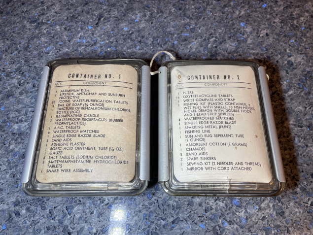 Re: Vietnam -- 1965 Survival, Escape, And Evasion Kit, Individual, Airman's, Type Seek-1 Containers 1 and 2 Matched Pair