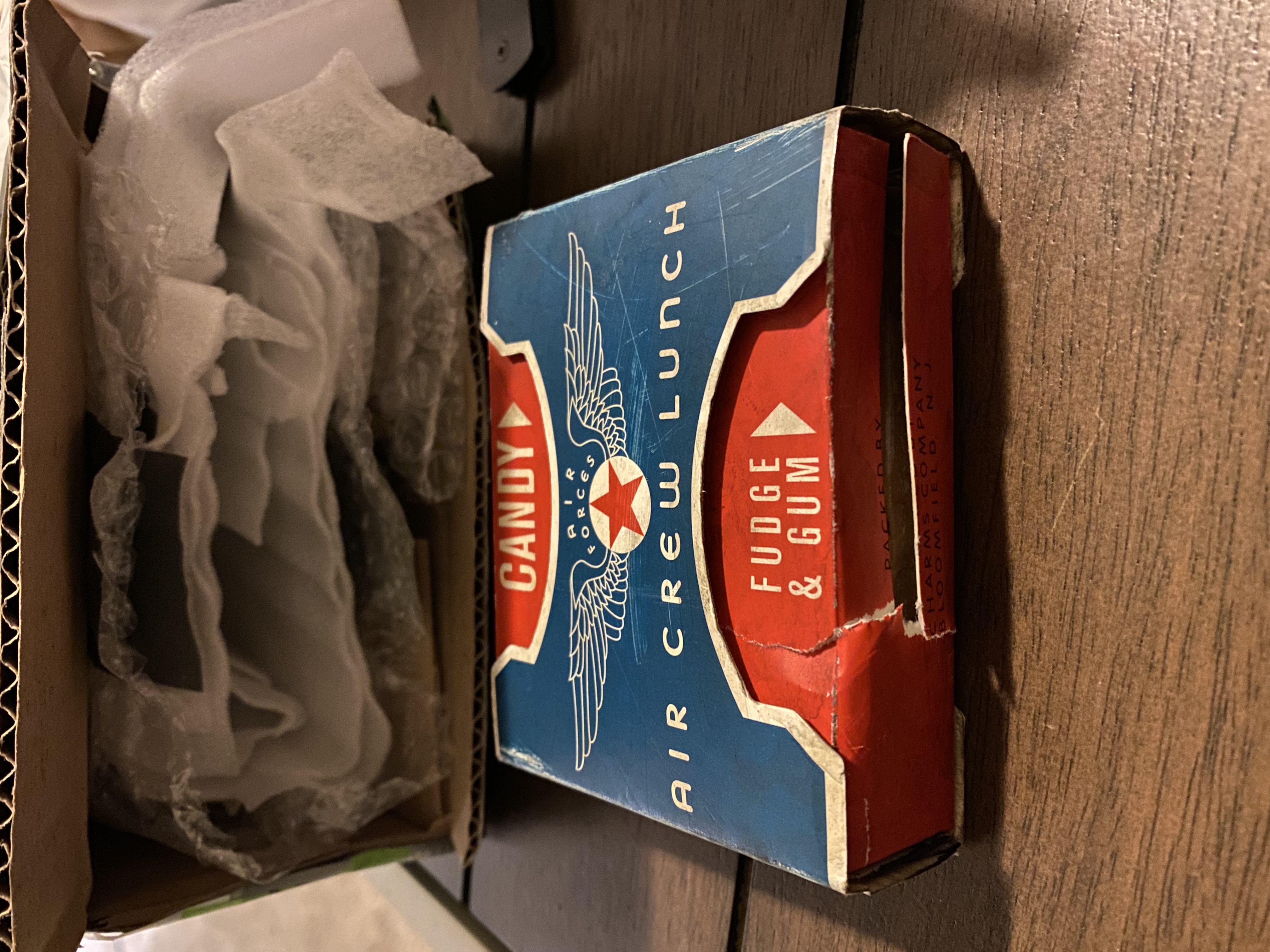 I cannot even explain how disappointed I am. This Air Crew Lunch was in fantastic shape when I purchased it from the Netherlands. Waited a long couple months for it, and it finally arrived today. Well, it had a big “Inspected by customs” sticker on it which was worrying. Carefully opened the box to find that customs had opened it, cut the bubble wrapping open, and just placed the box on top of the bubble wrap when they boxed it back up. But worst of all, they sliced the box open. I assume when they cut the bubble wrap they cut too far.