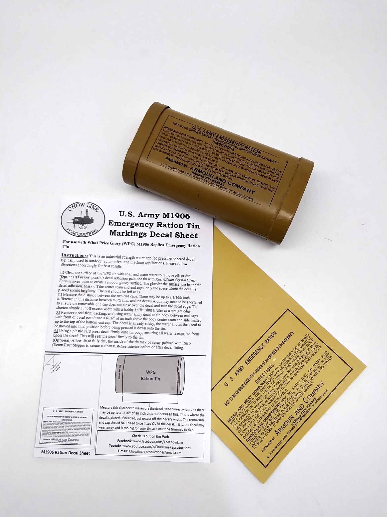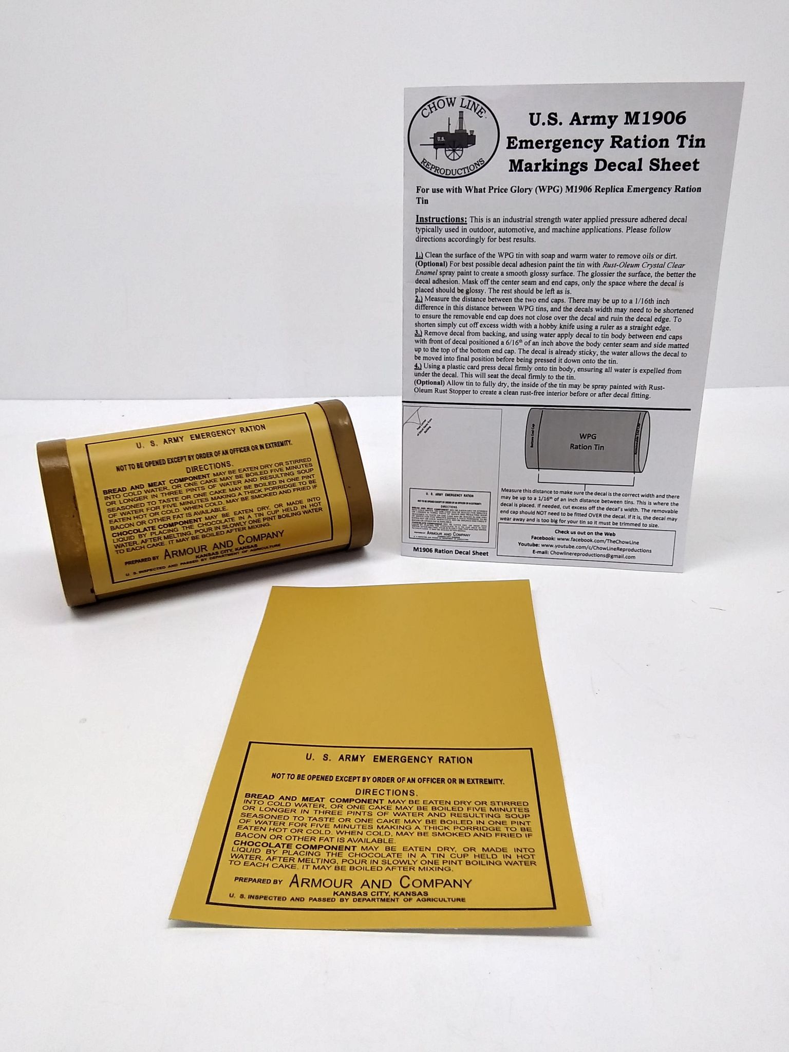Markings Decal Sheet for the What Price Glory (WPG) M1906 Emergency Ration Tin
