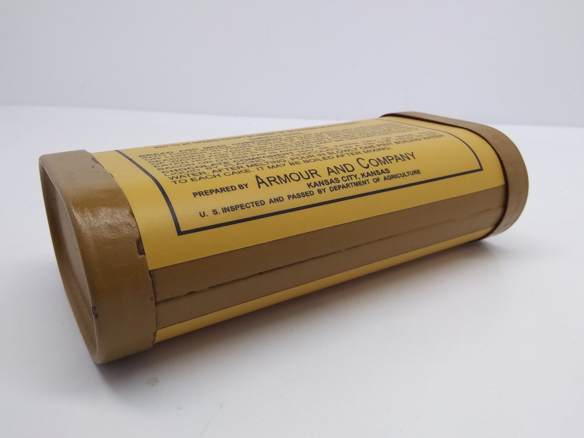 What Price Glory has produced some excellent reproductions, and without Jerry’s efforts the reenactment community at large would not have the broad spectrum of niche rare reproduction items that we do. The M1906 Armour and Company Emergency Ration Tin (link below) recently released is yet another example of a sorely needed item. There are some improvements which can be made to it though, those being a two-tone color scheme with a brighter yellow body as seen on originals, a primed interior to prevent rusting, and more accurate scaled markings.