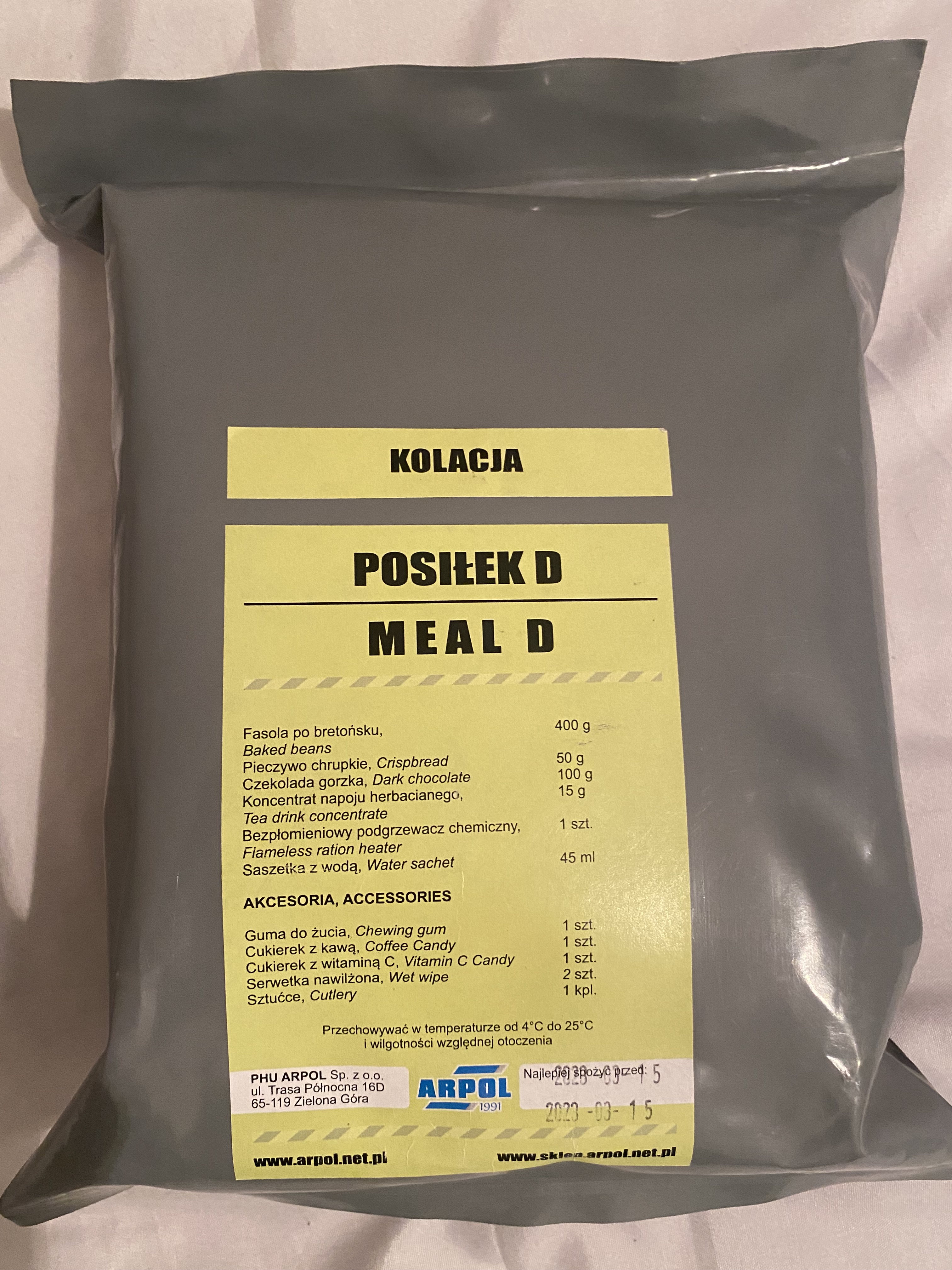 There is one ration of Polish firefighters for sale. The composition of the ration in the photo. Weight almost 700 grams (more 1.5 pounds). Expiration date until 03.2023. If you are interested, please contact me in private messages.
