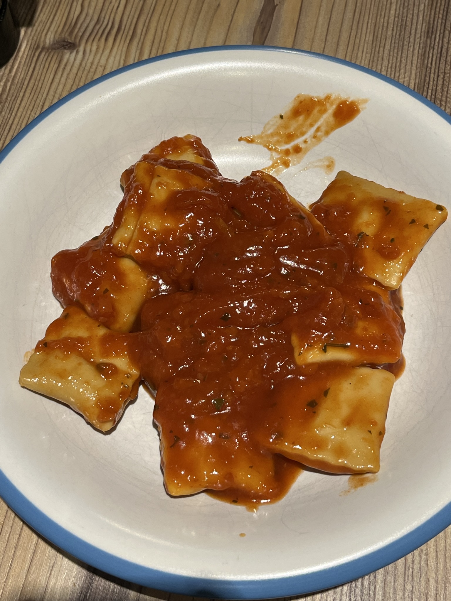 looks like any tortelini in tomato sauce, not like German "Maultaschen in broth"