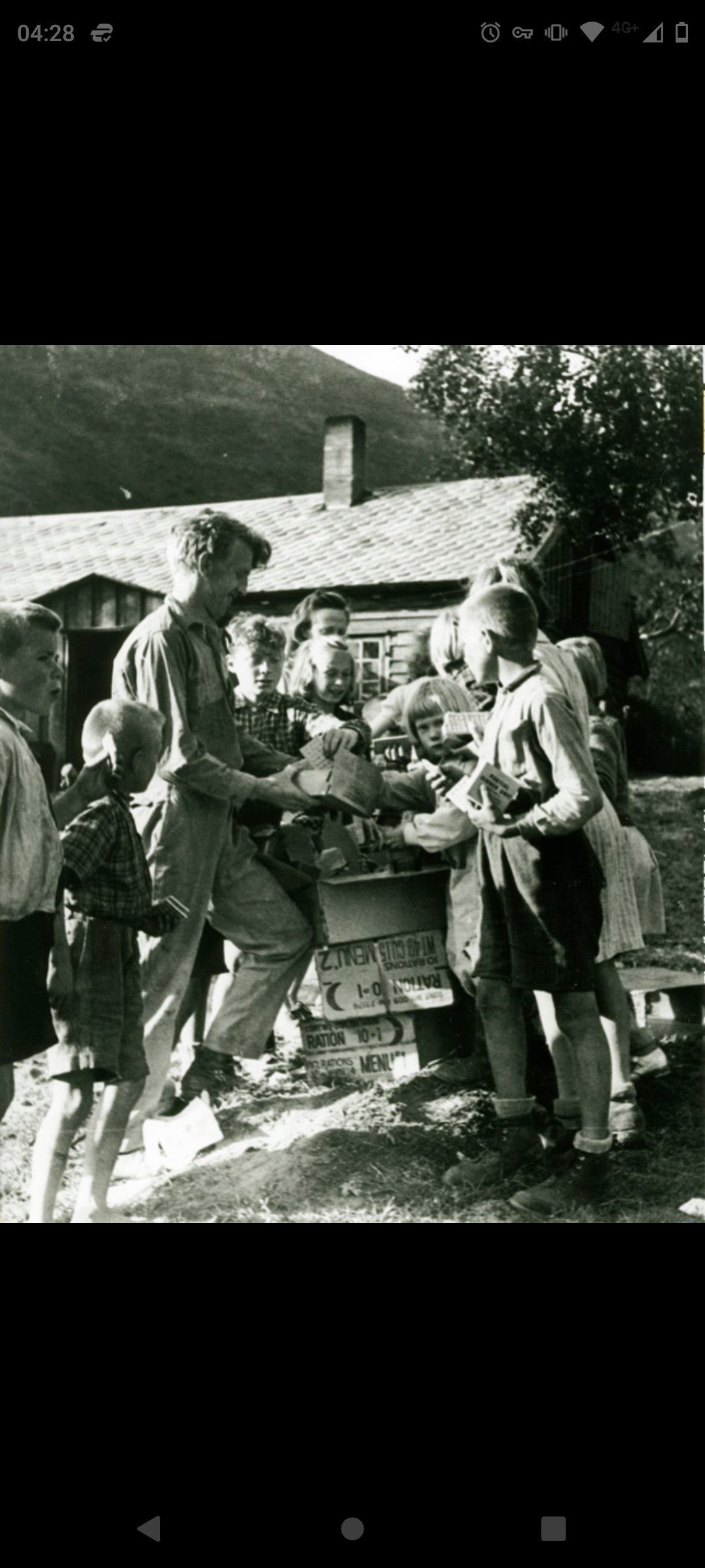 Here in Norway we were part of the Marshal aid program and there are a decent amount of pictures like this of kids, adults and even Sami people with cases of 10 in 1s, K rations and basically every type of us produced ration. Guess they dumped alot of them in Europe and other countries too after the war.