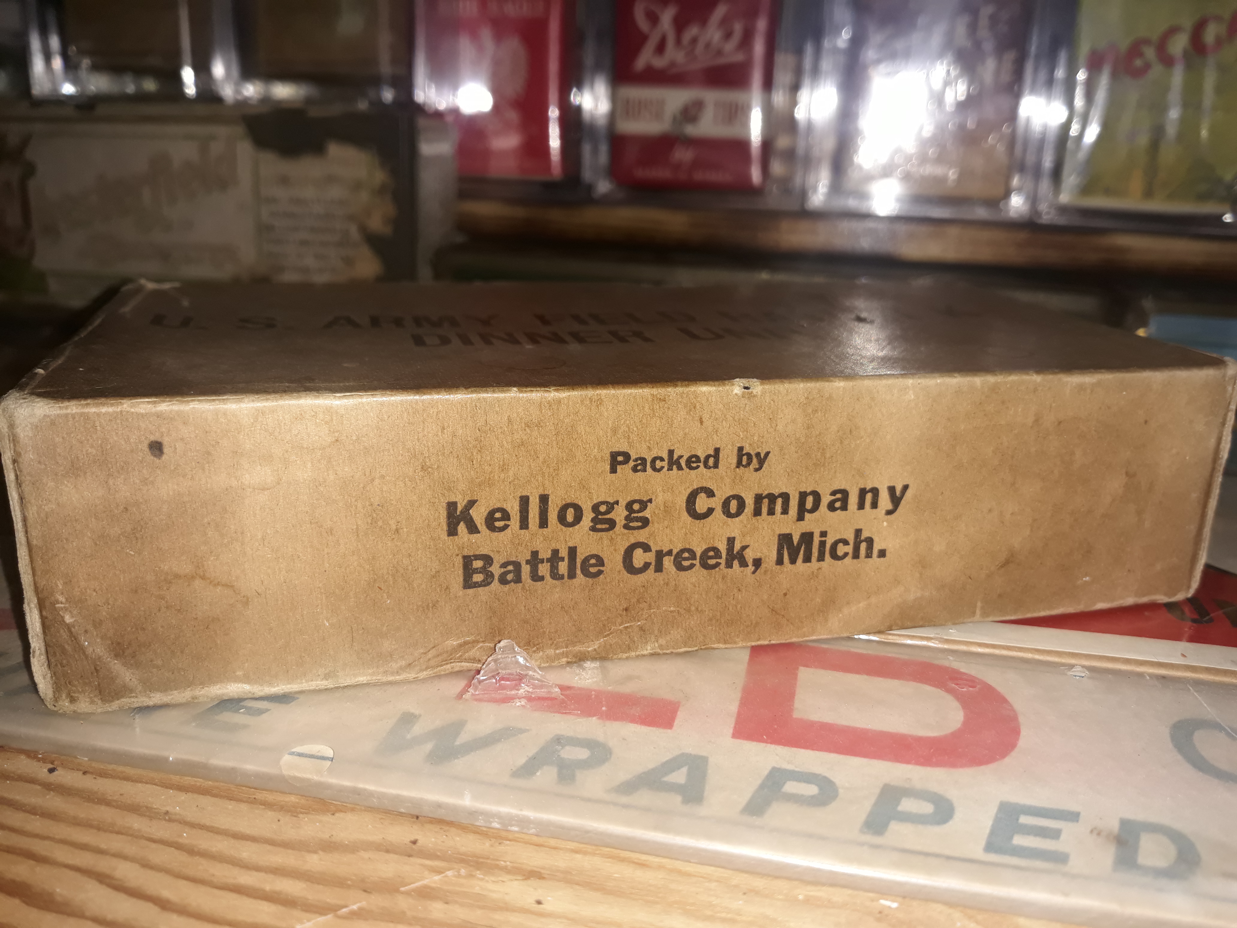 Just opened this mid war Dinner and was very happy with its condition. Interesting notes for this particular K it did not come with a wooden spoon or matches and the cheese can was loose in the box and did not come in the usual cardboard sleeve. Overall a beautiful display piece.