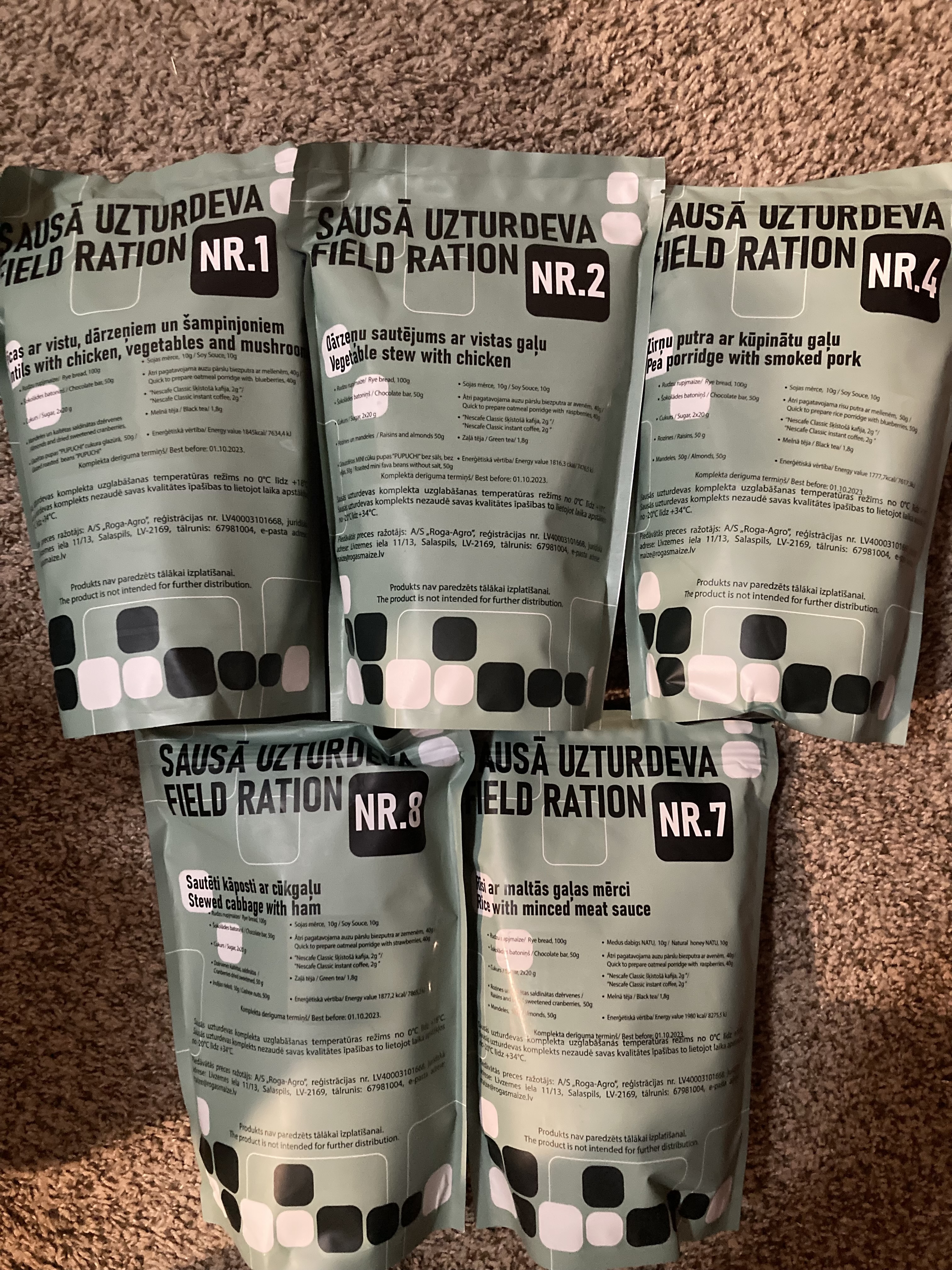 Hi all. I have a few Latvian rations I would like to sell. All have expiration date of October 1, 2023.