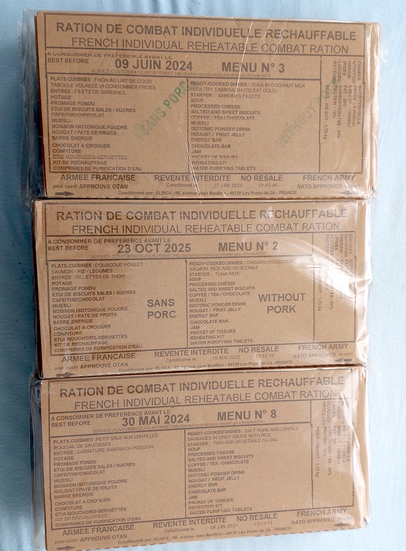 I have fresh French 24h RCIR rations, each menu 1 piece: