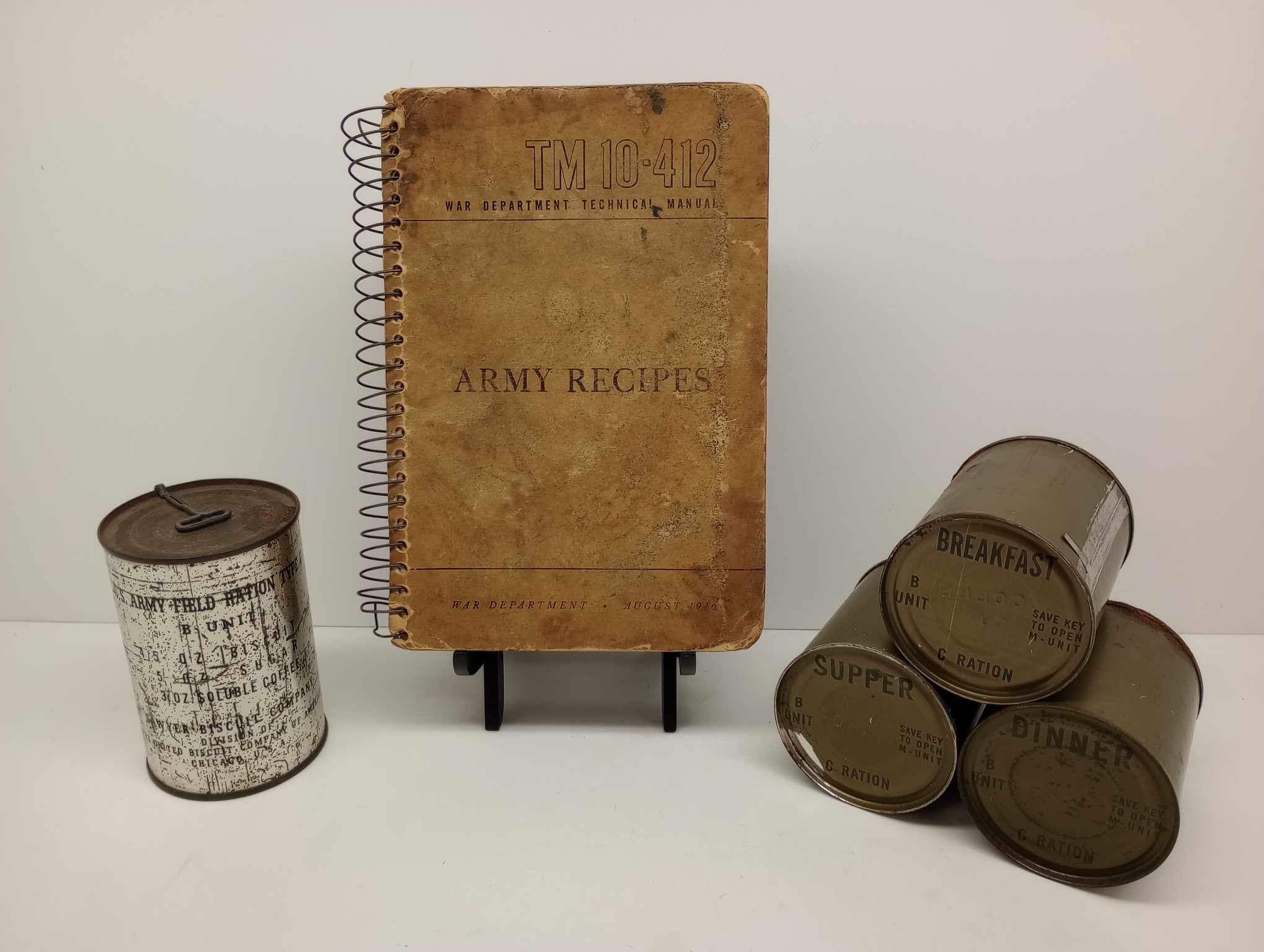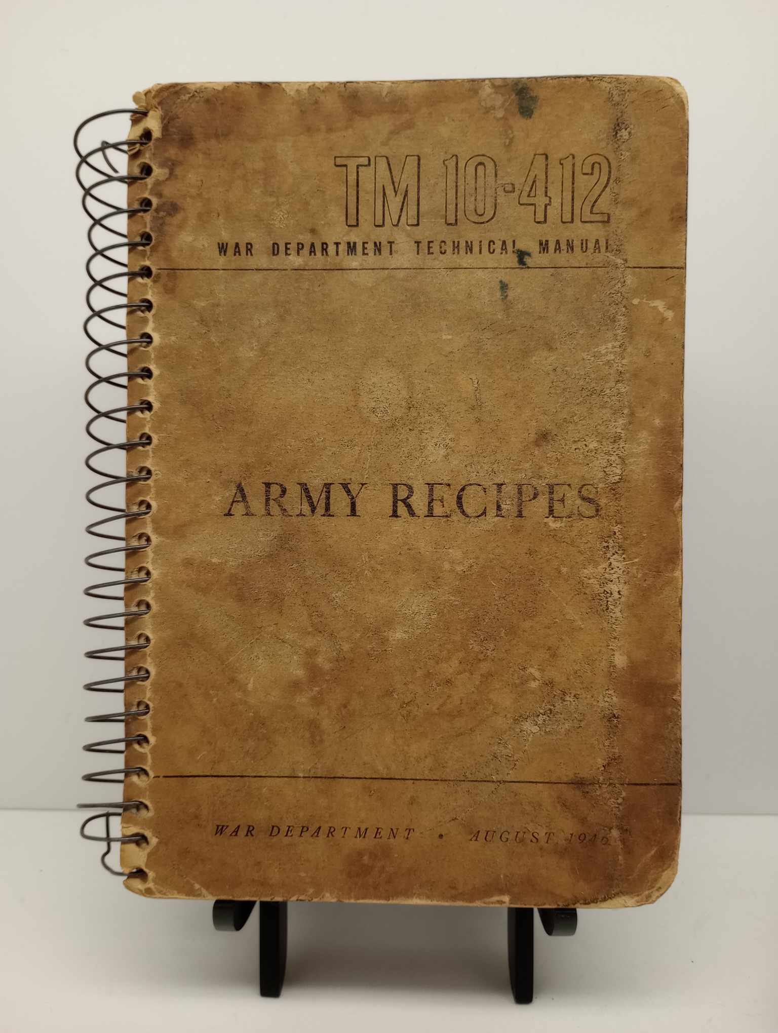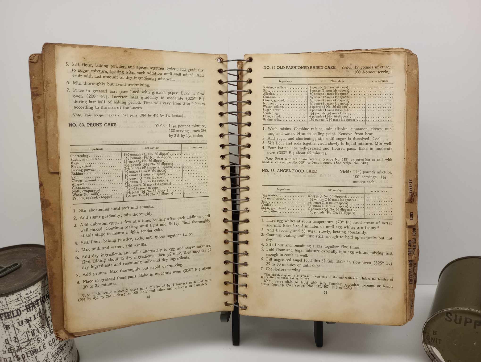 For those interested in military ration recipes, the War Department manual TM 10-412 Army Recipes printed by the War department in 1946 is a wonderful look into the meals prepared for American soldiers in WWII. The material covered in this manual deals primarily with preparing fresh meals for mess in a field kitchen or camp kitchen, but also includes sections on preparing B rations, utilizing leftovers, and special instructions for dehydrated foods.