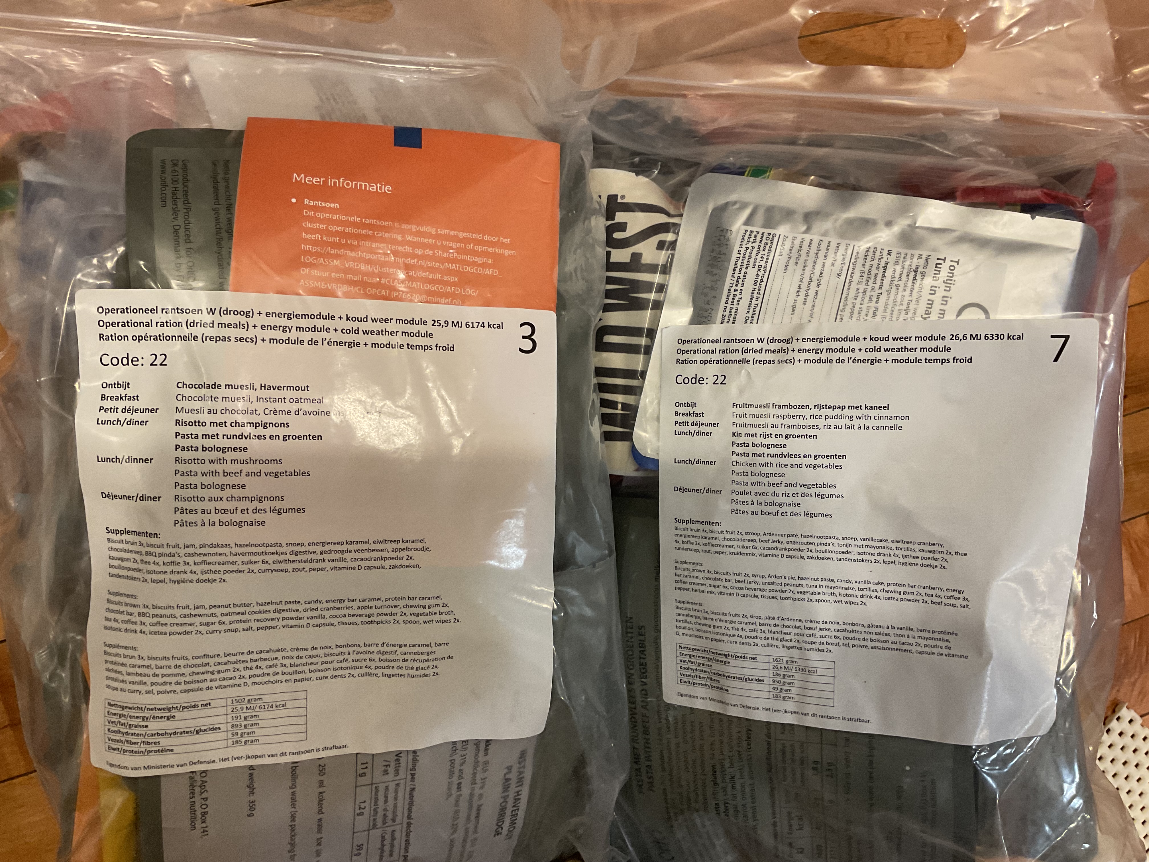 Operational ration + energy module+ cold weather module (Two, menu 3 and 7, code:22)