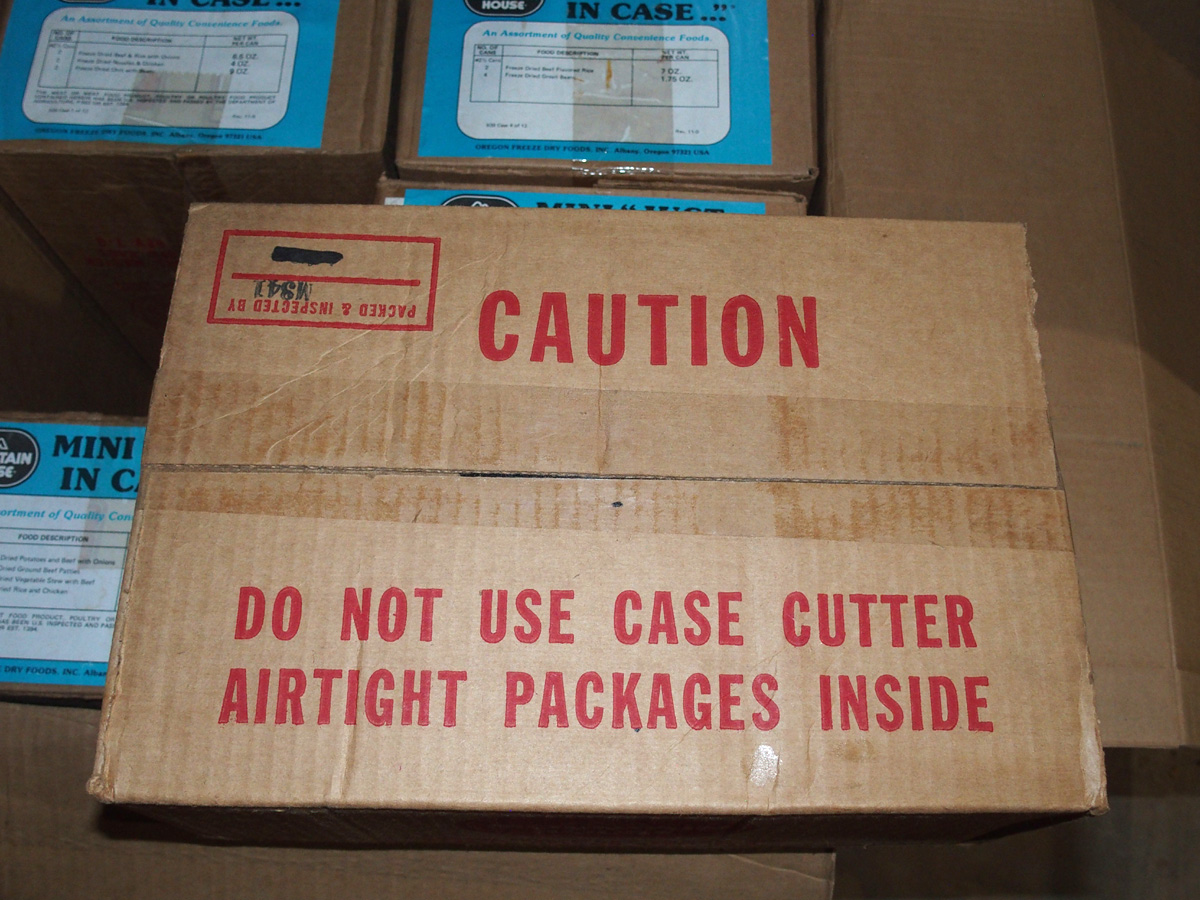 I contacted the seller and asked a few questions. The boxes had date codes on them that indicated they were from 1982. After some discussion, we came to an agreement on price. I then drove up to north Georgia and picked up these boxes of vintage food. As we loaded the boxes into my vehicle, I asked the seller how he had come to have them. As he described it, he was helping an elderly fellow around his house and this gentleman asked if he'd like to have these things. The older man had apparently purchased this "food insurance" 40+ years ago and had kept it in a cool, dry place. For whatever reason - perhaps he had purchased items to replace these - he no longer felt a need to keep them.