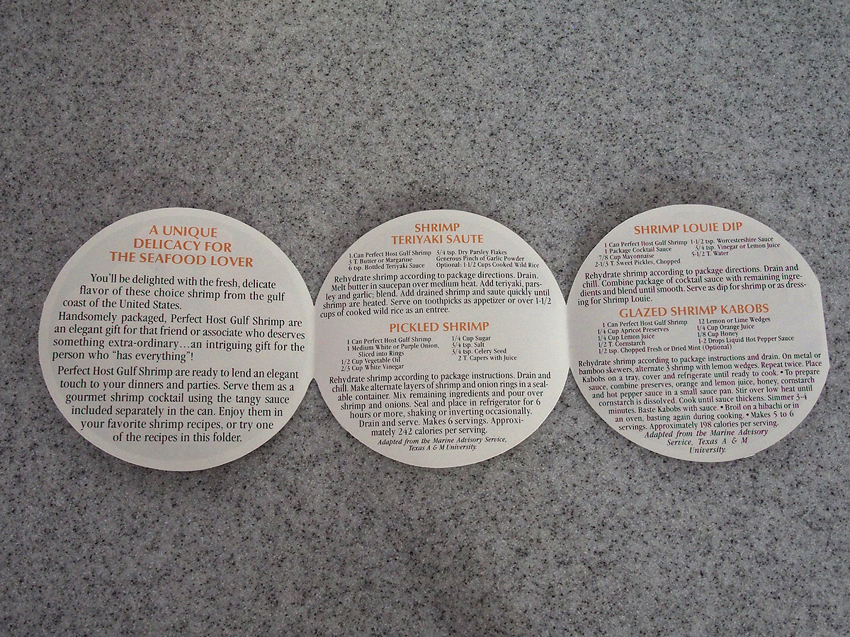 I didn't notice it until I was posting these pictures but Perfect Host is a trademark of Oregon Freeze Dry Foods. I had never heard of "Perfect Host" prior to this and a quick check of trademark information indicates that this was registered as a trademark in 1982.