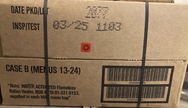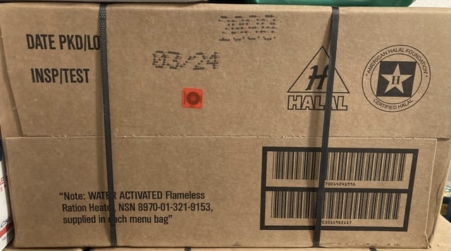 I have one Halal, one case A and one case B of sealed USGI MREs available for sale. Asking $135 for each case including shipping anywhere in US. Most likely with USPS ground advantage unless UPS or FedEx is cheaper as they're pretty heavy. Located in WA state. PayPal goods and services preferred. Please message me directly if interested or have any questions. Thank you.