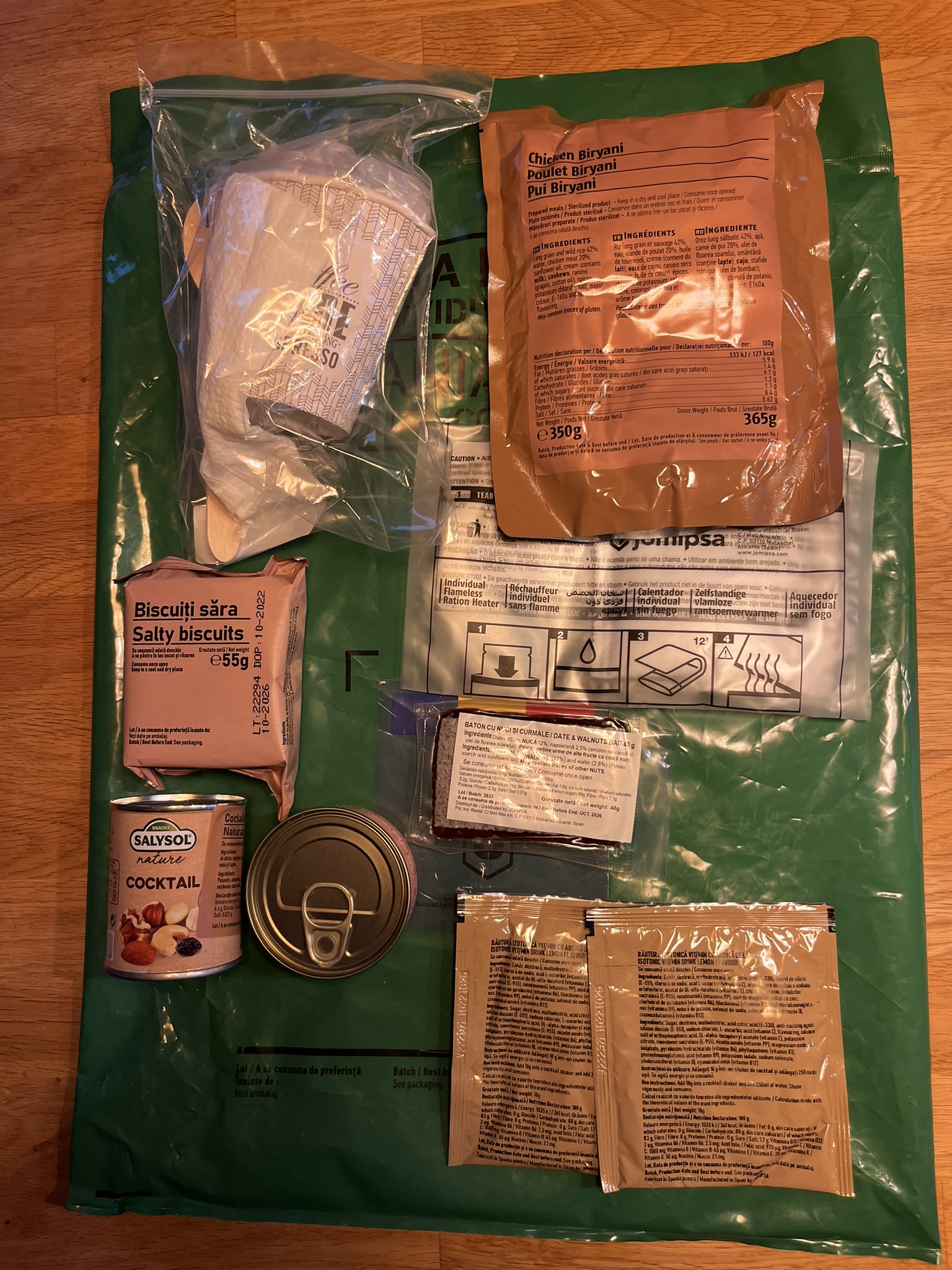 Check out my ORP menu spreadsheet: https://bit.ly/2NqUFRX | I have: | British 24HR Box Rations | French RCIRs | Type I EPA |Danish Rations