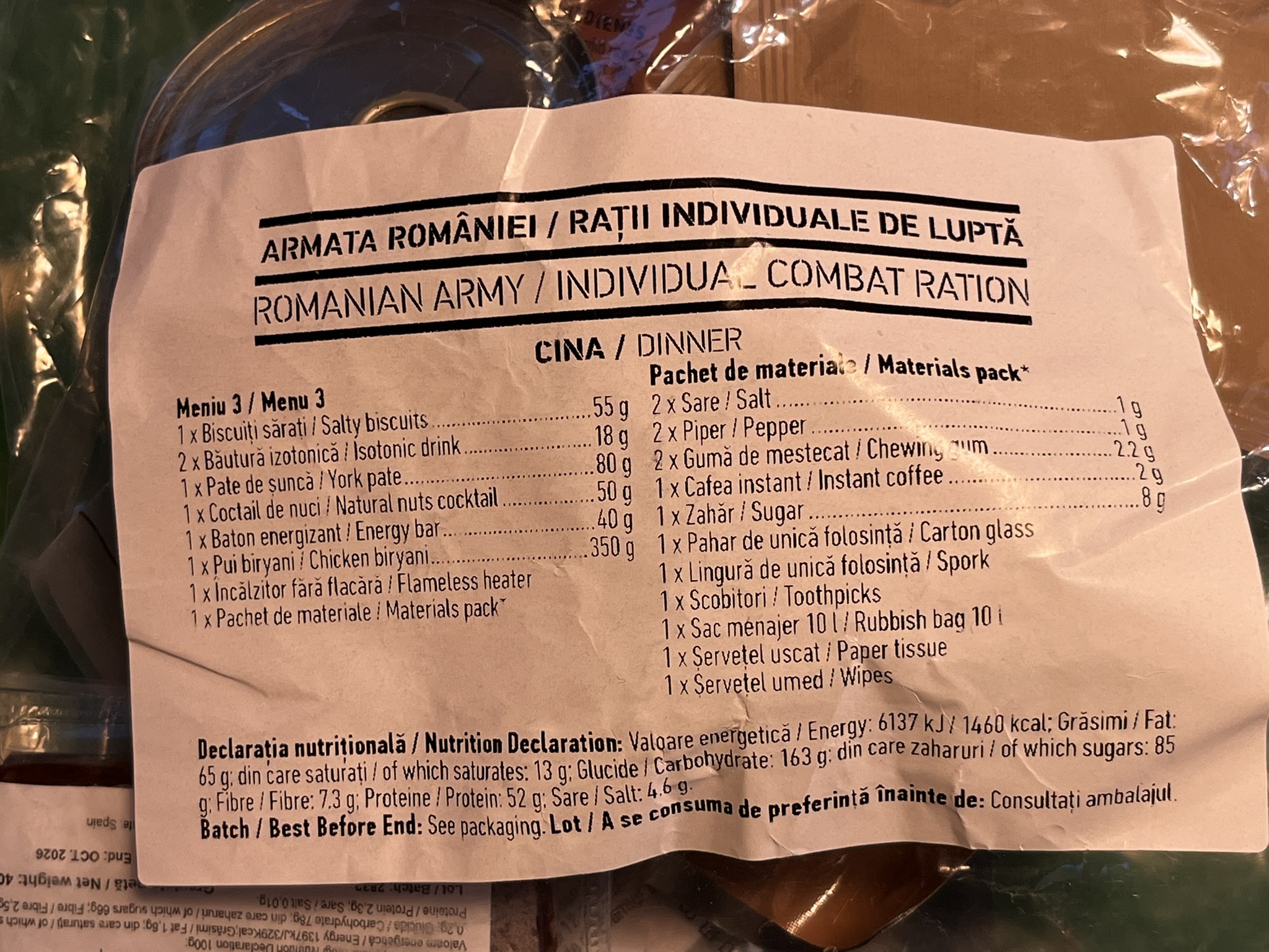 Newer romanian rations are provided by FoodForce/Serac out of Sweden, they come in a tan bag similar to this