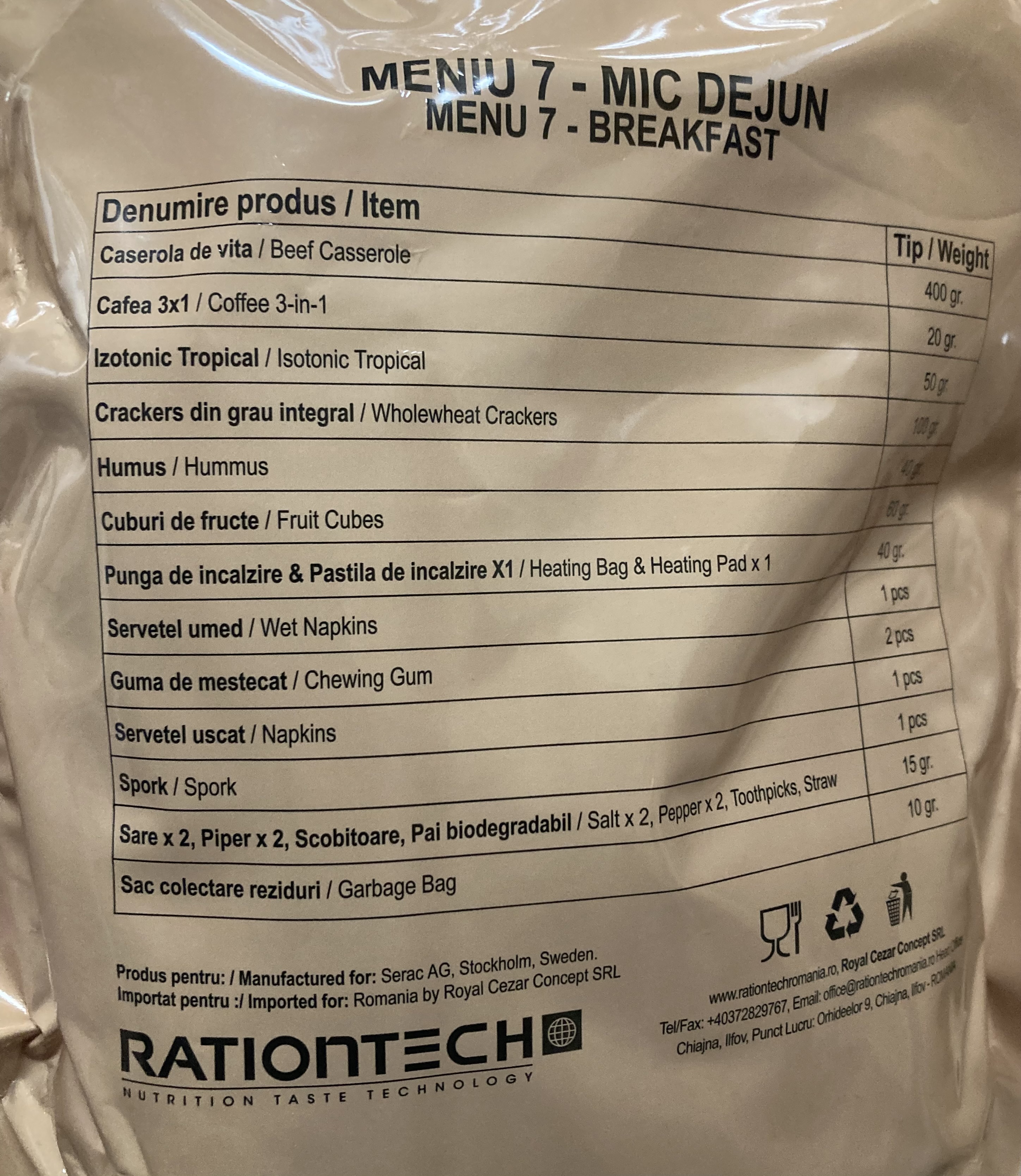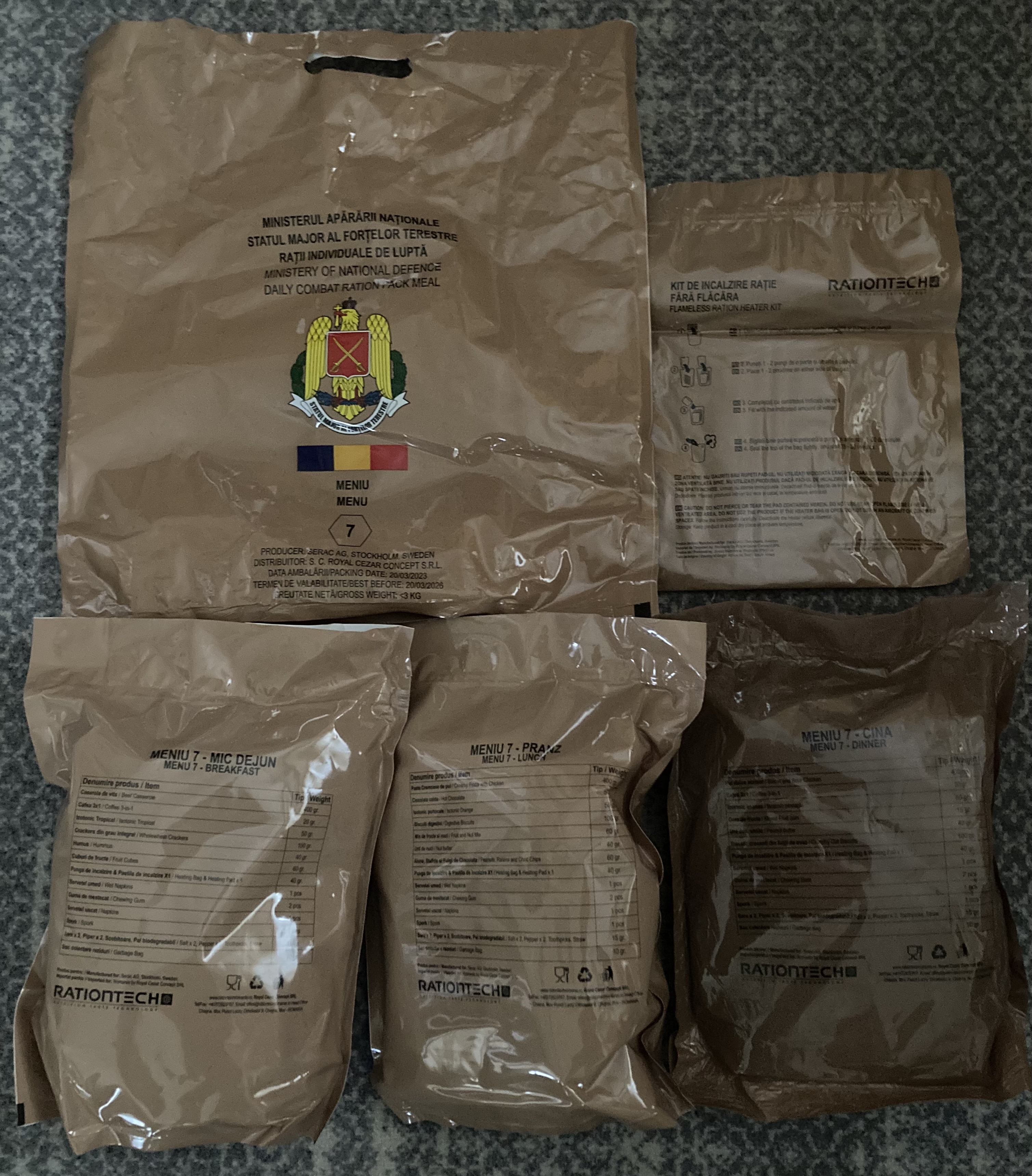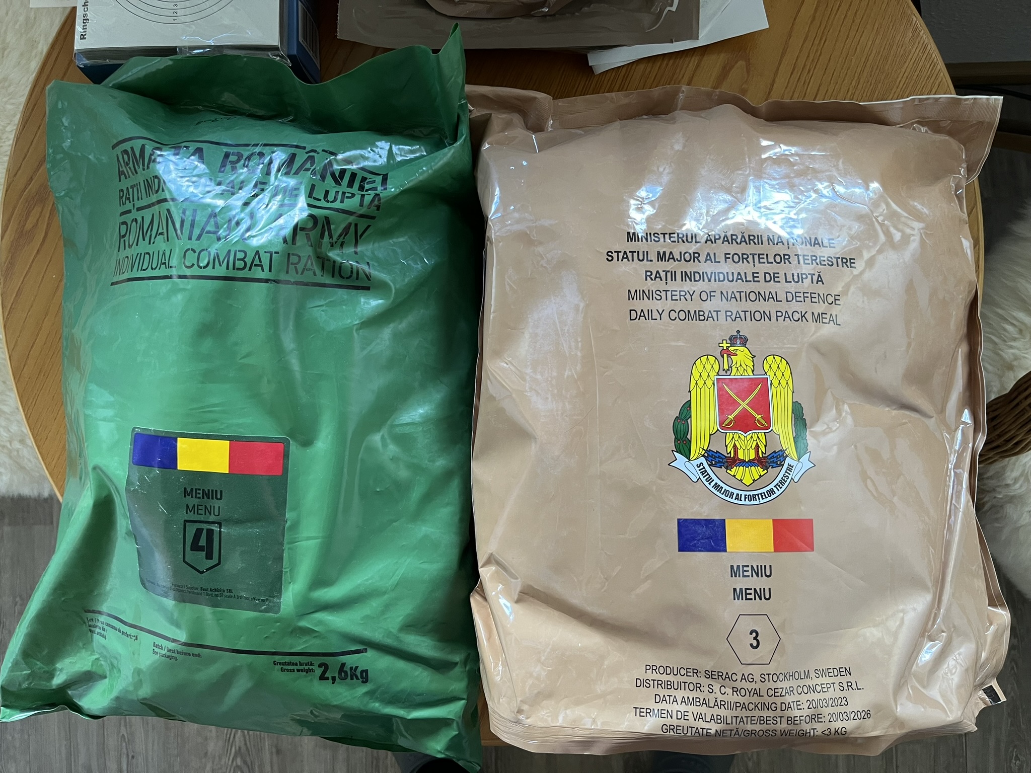 Newer romanian rations are provided by FoodForce/Serac out of Sweden, they come in a tan bag similar to this