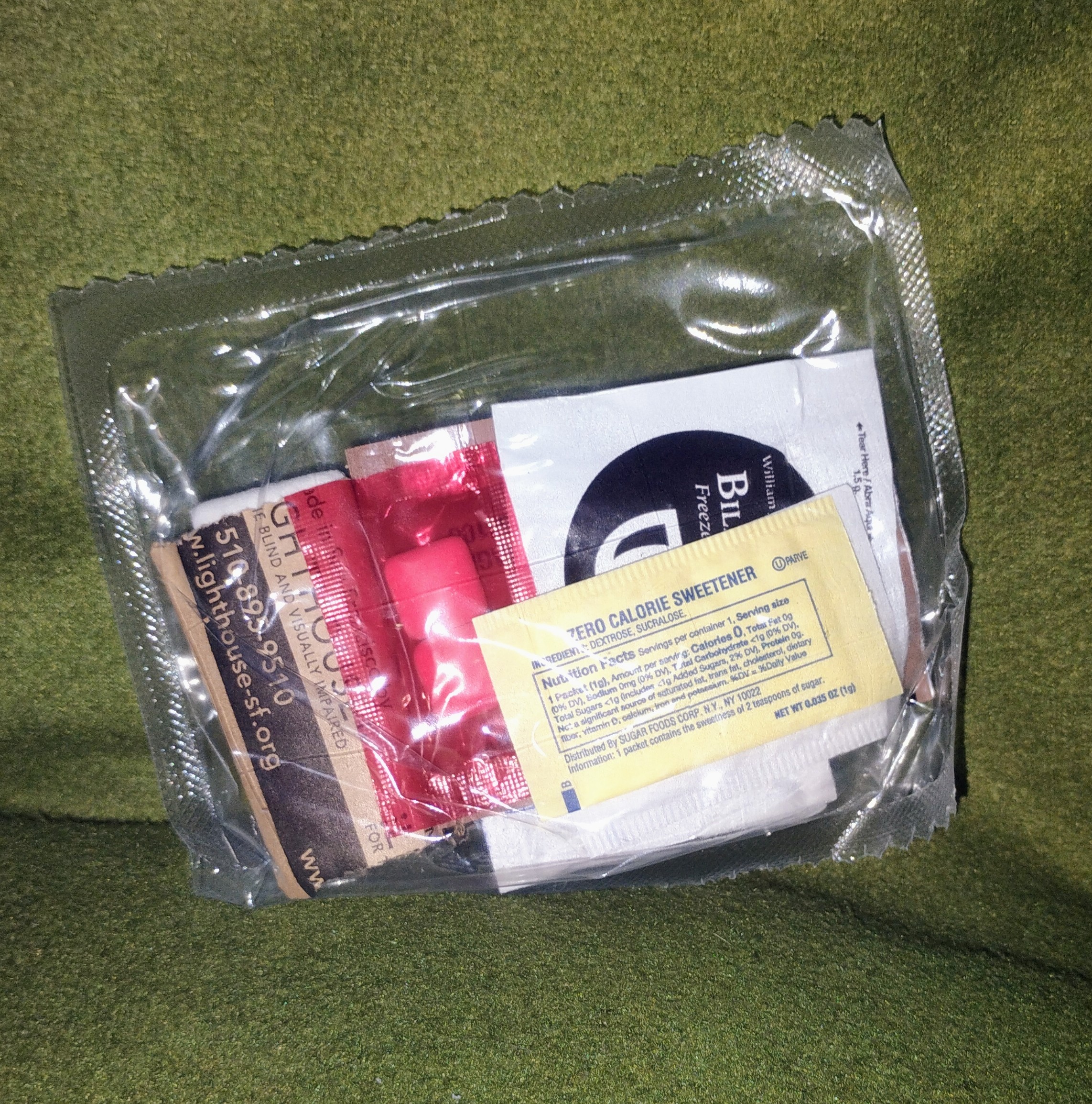 I opened up the nut raisin mix and tried some before the entree, and found the peanuts, raisins and generic M&Ms to be fresh and tasty. The nuts were very lightly salted and well dried, the right amount of firmness and crack when bitten; the generic M&Ms weren't stale or bloomed, a perfectly adequate chocolate candy. I don't like any of the other types of nut in the mix, but my wife has no such reservations; she said it was a "really, REALLY good trail mix."