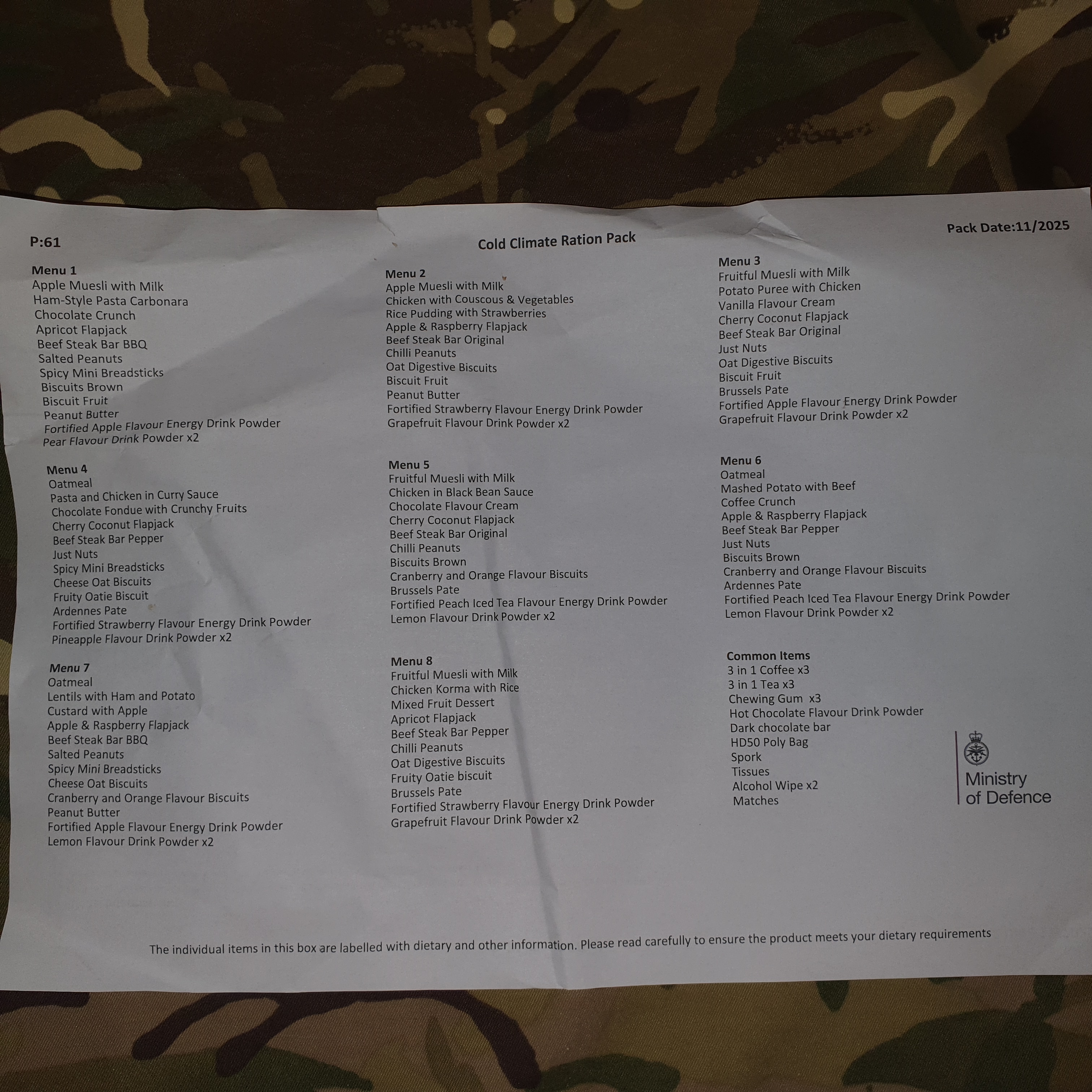 Re: 24Hr Cold Climate Ration pack 2025 pd