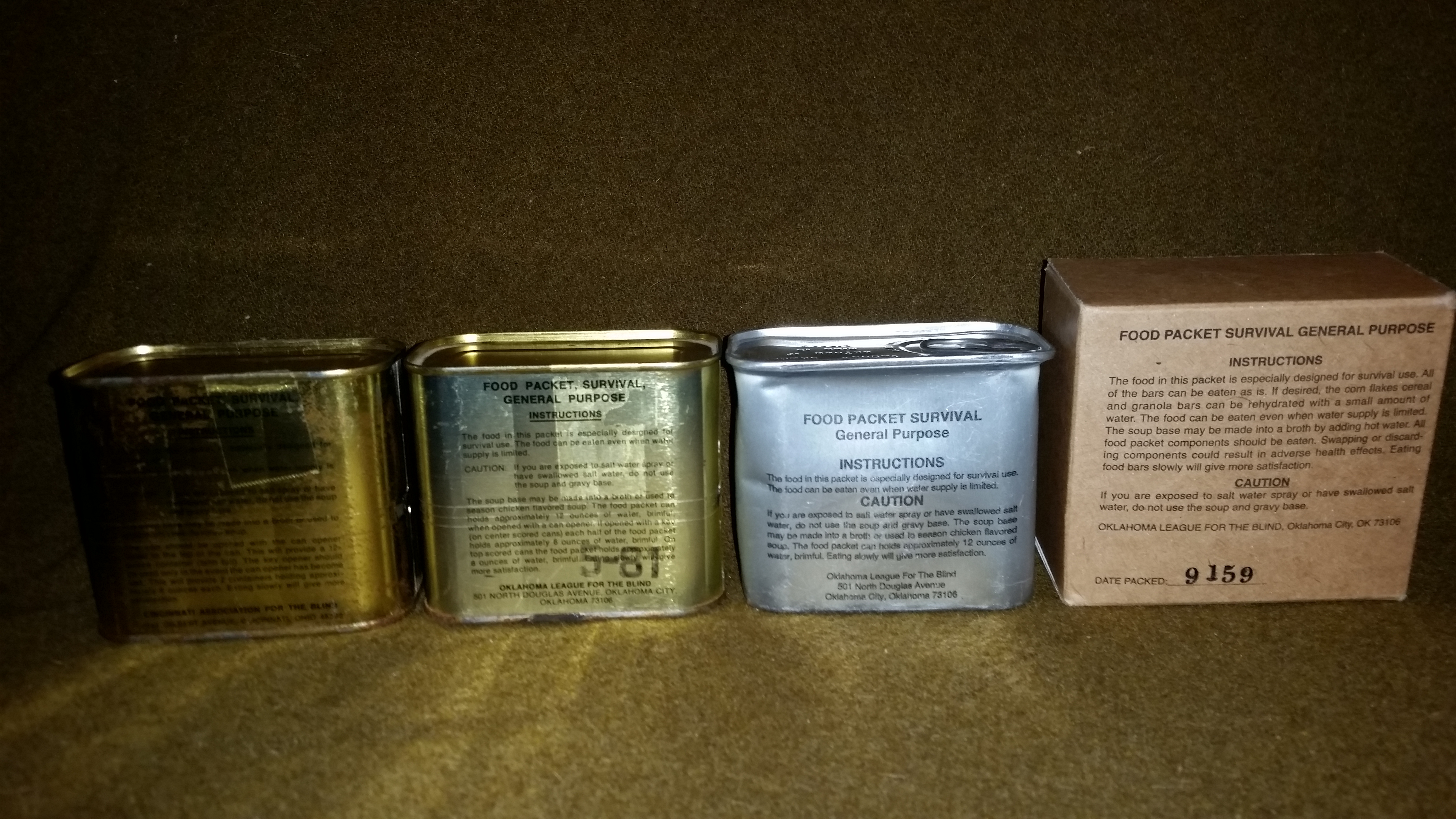Upcoming thread: 4 generations of Food Packet, Survival, General Purpose. An analysis of the progression and improvements. A detailed comparison. Should have this thread ready very soon.